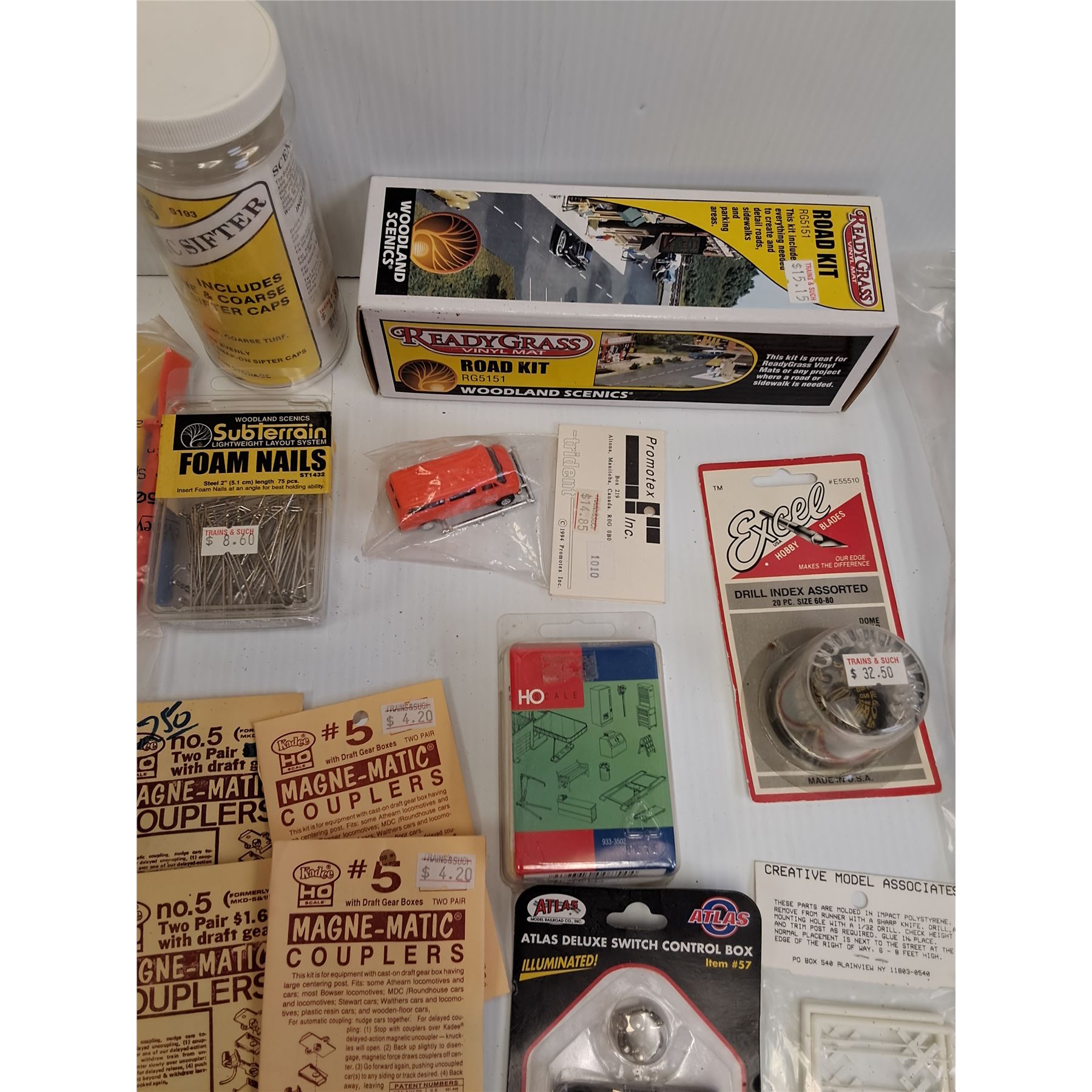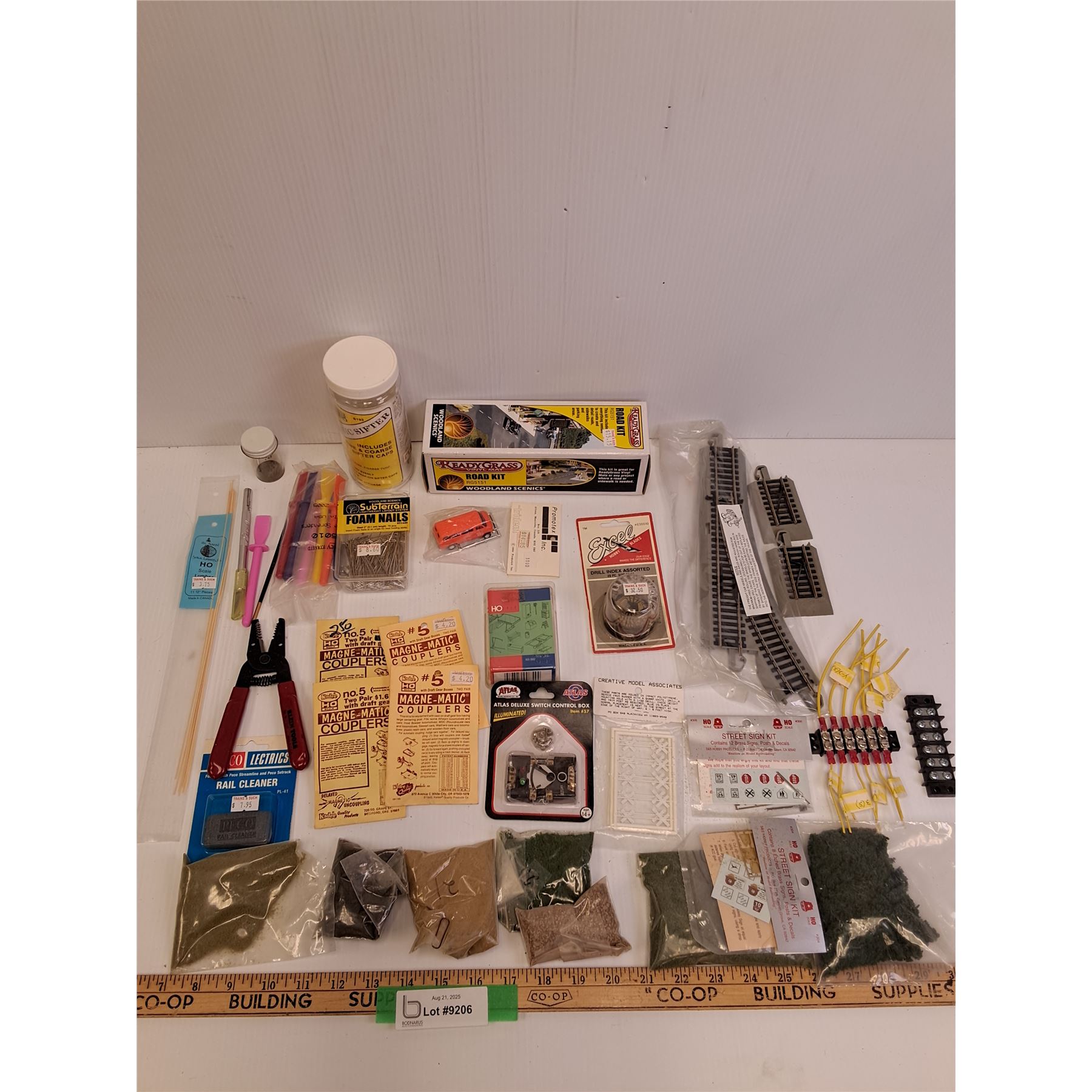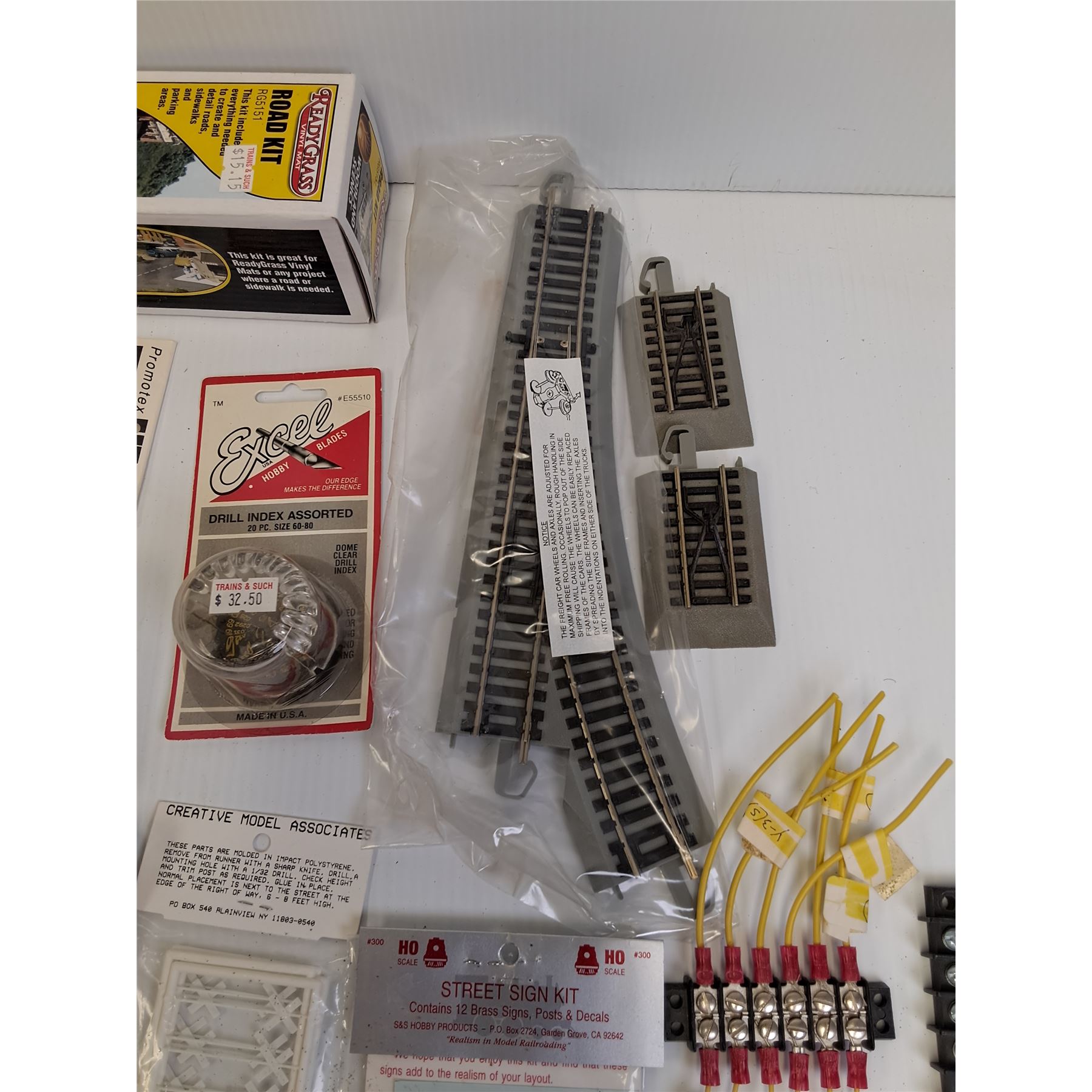 Model Train Supplies Lot: Electrical Connections, Foam Nails, Tracks, Road Kit, Grass & Gravel Kits