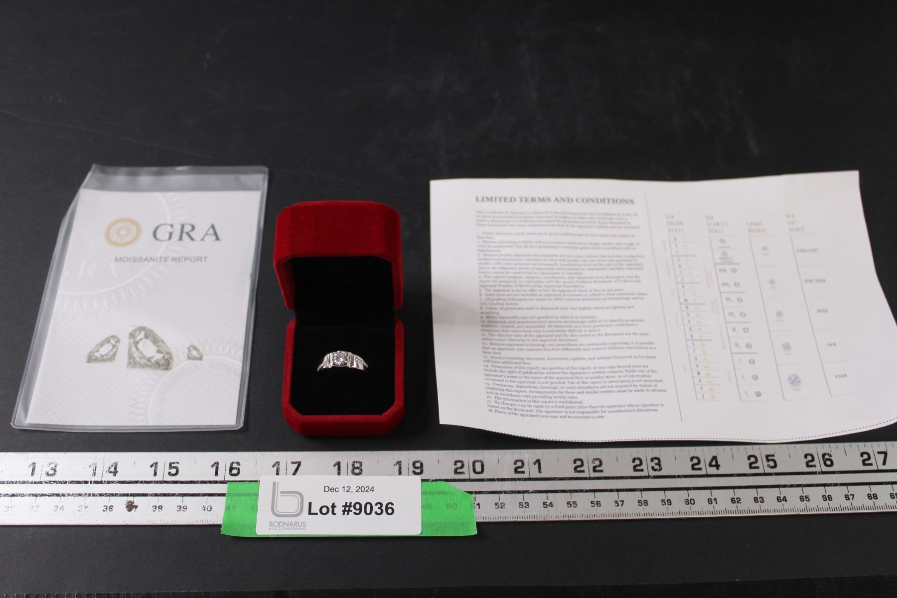 ^ Moissanite 1 ct. GRA Certified Round Brilliant Cut Set in Sterling Silver Ring - Adjustable Band