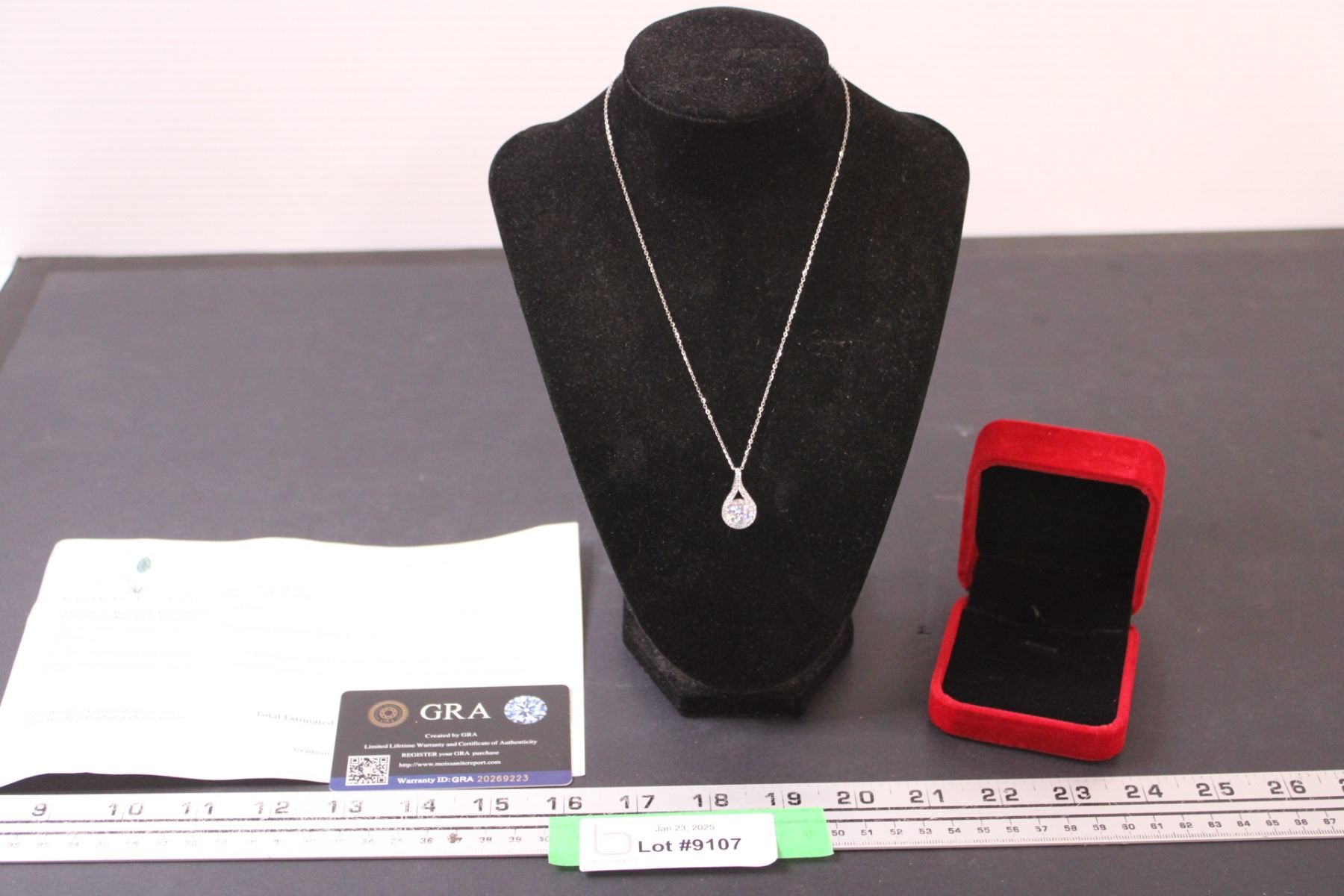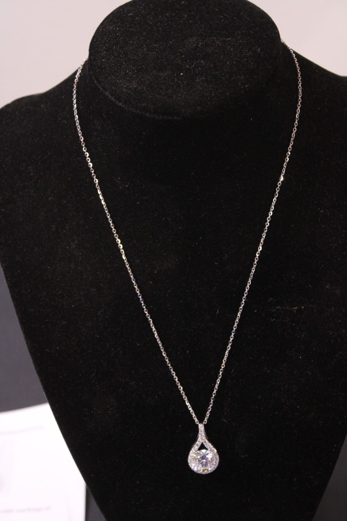 ^ Moissanite 3 Ct. GRA Certified Brilliant Round Cut VVS D Color w/ 24 Round Cut Cubic Zirconium Set in Tear Drop Halo Pendant in Sterling Silver