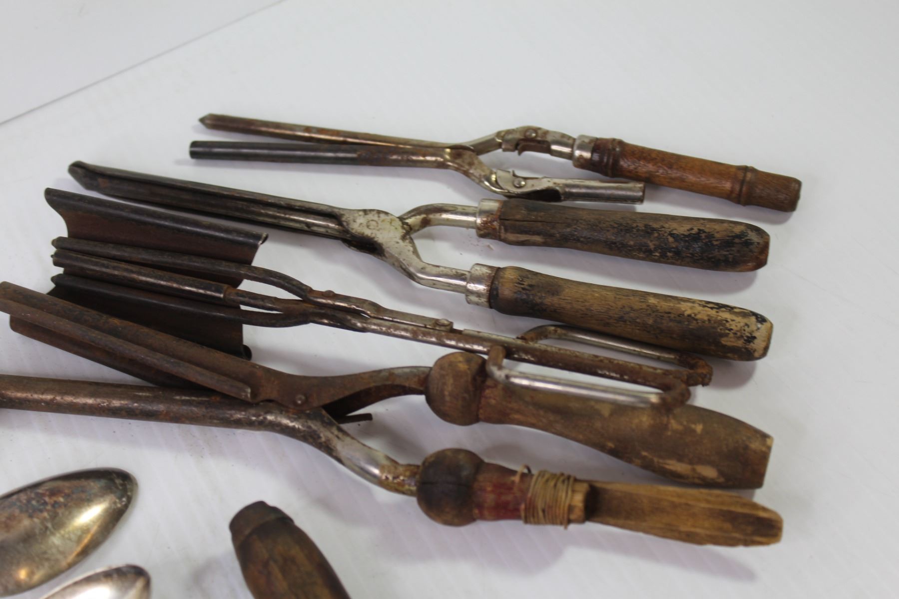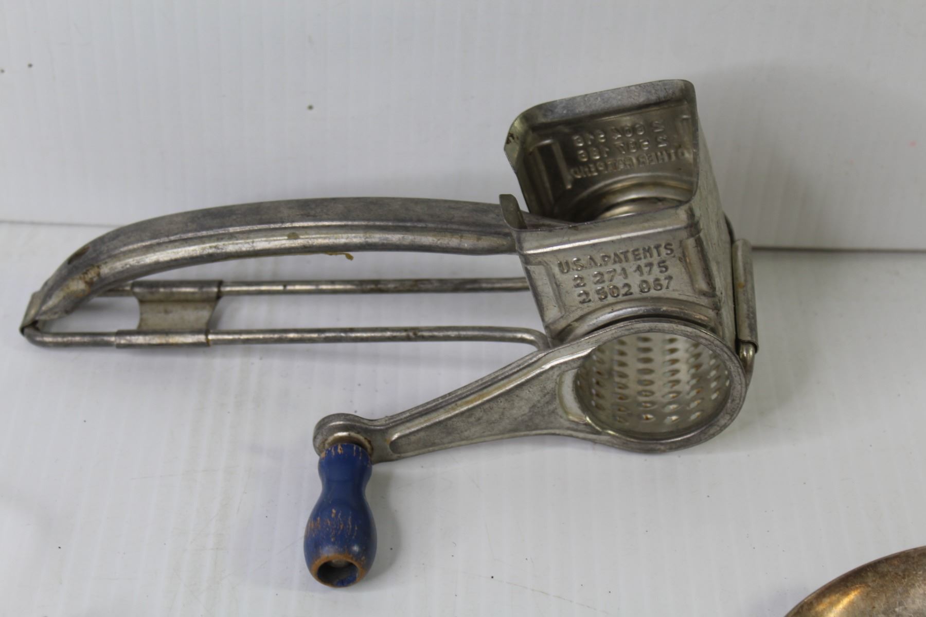 Mouli Grater - Vintage Curling Irons - Vintage Spoons - Rolling Pastry Cutter - Hole Punch - Vintage Wrench - Misc. Items