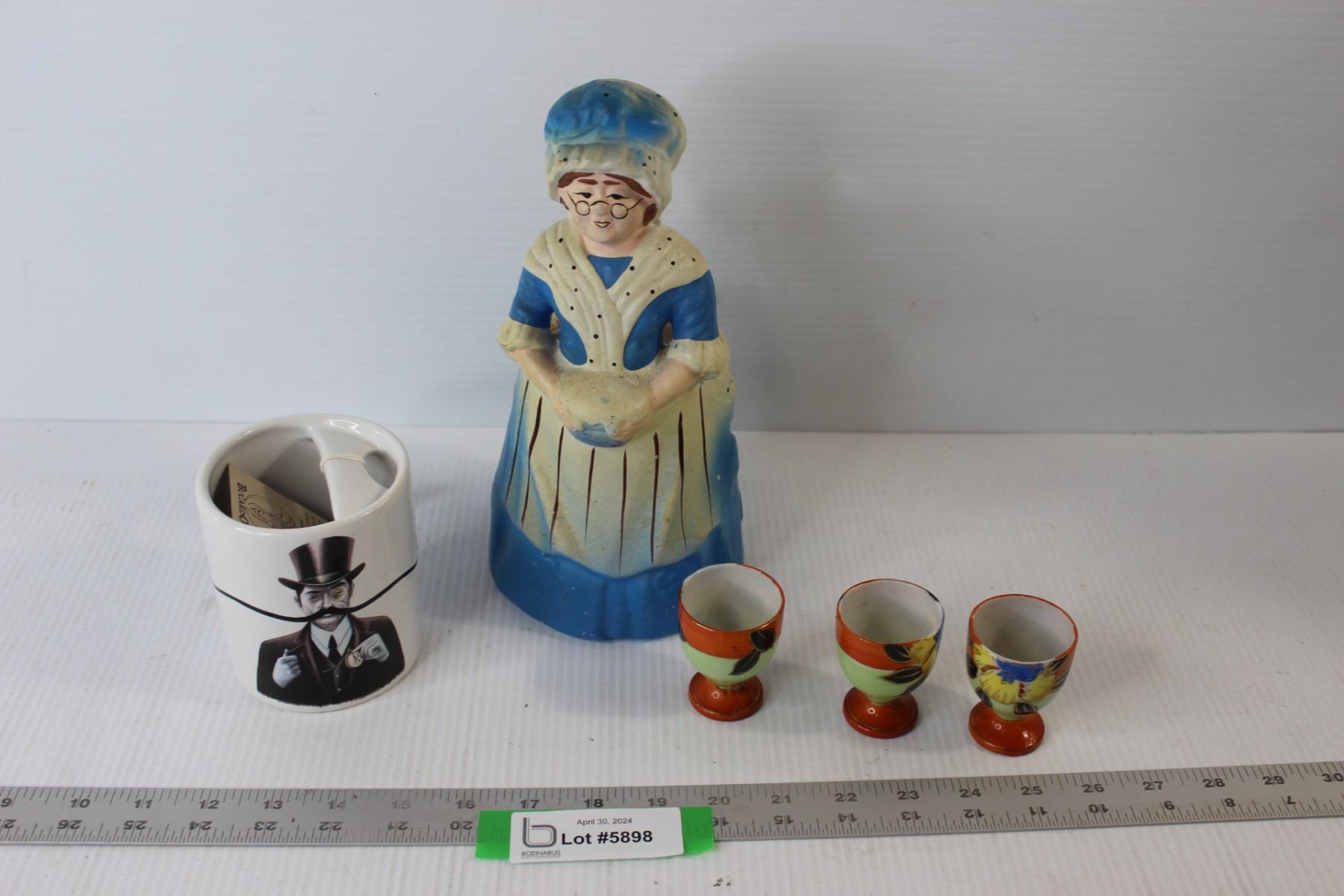Mustache Cup, Ceramic Scrub Brush Holder Woman, (3) Egg Cups