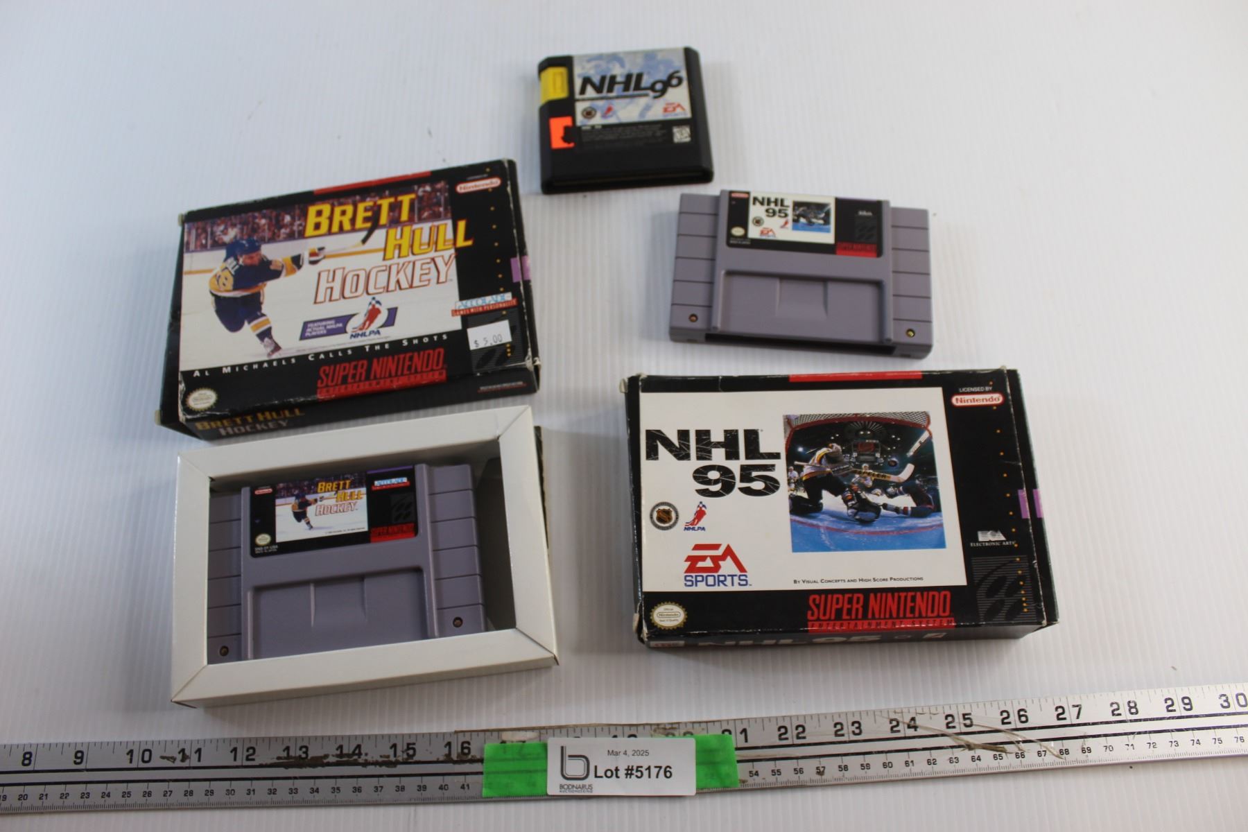 NHL 96 Game Cartridge and Super Nintendo Brett Hull Hockey & NHL 95 Game Cartridges