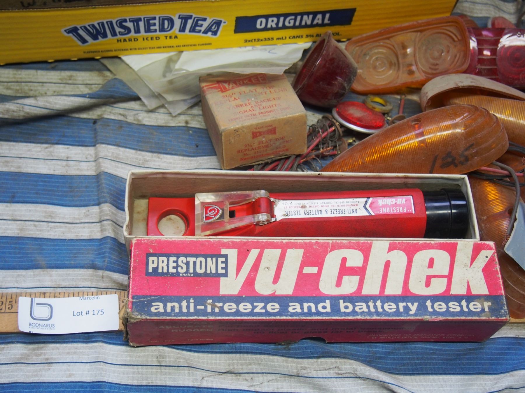 NOS Headlight Lenses, Prestone Antifreeze, Battery Tester and Auto Parts