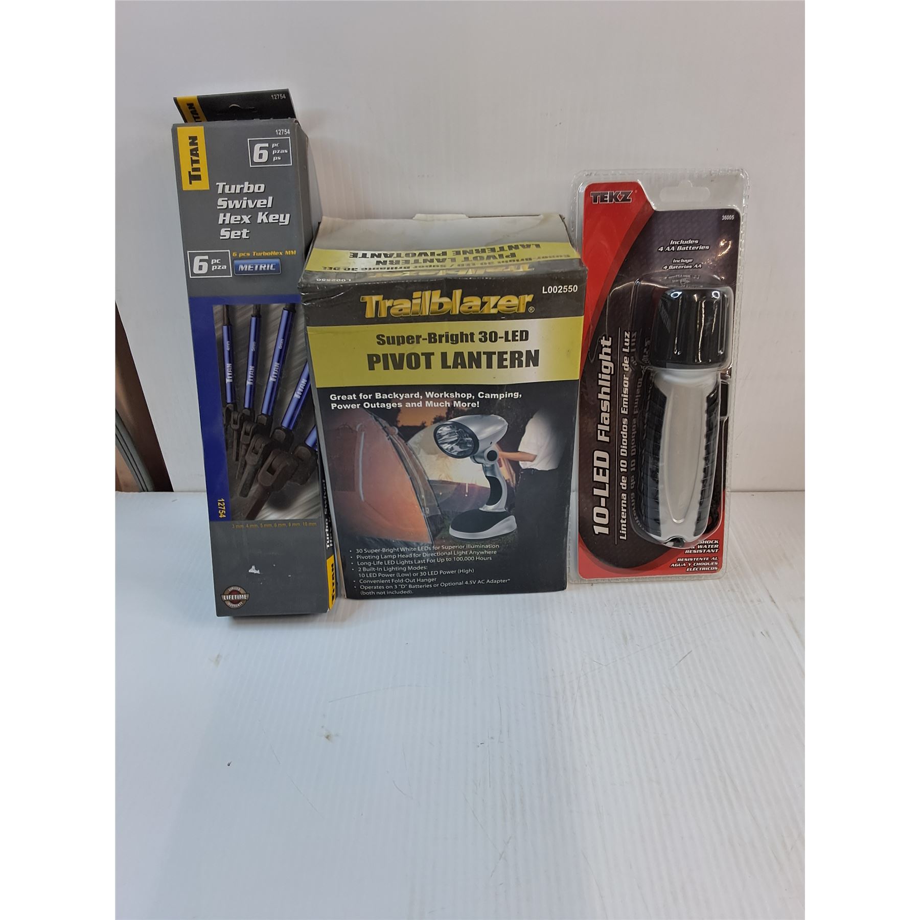 NOS Pivot Lantern,Extra long Hex Key Set,Turbo Swivel Hex Key Set,Flashlight,Linoleum Knife,Nut Dri