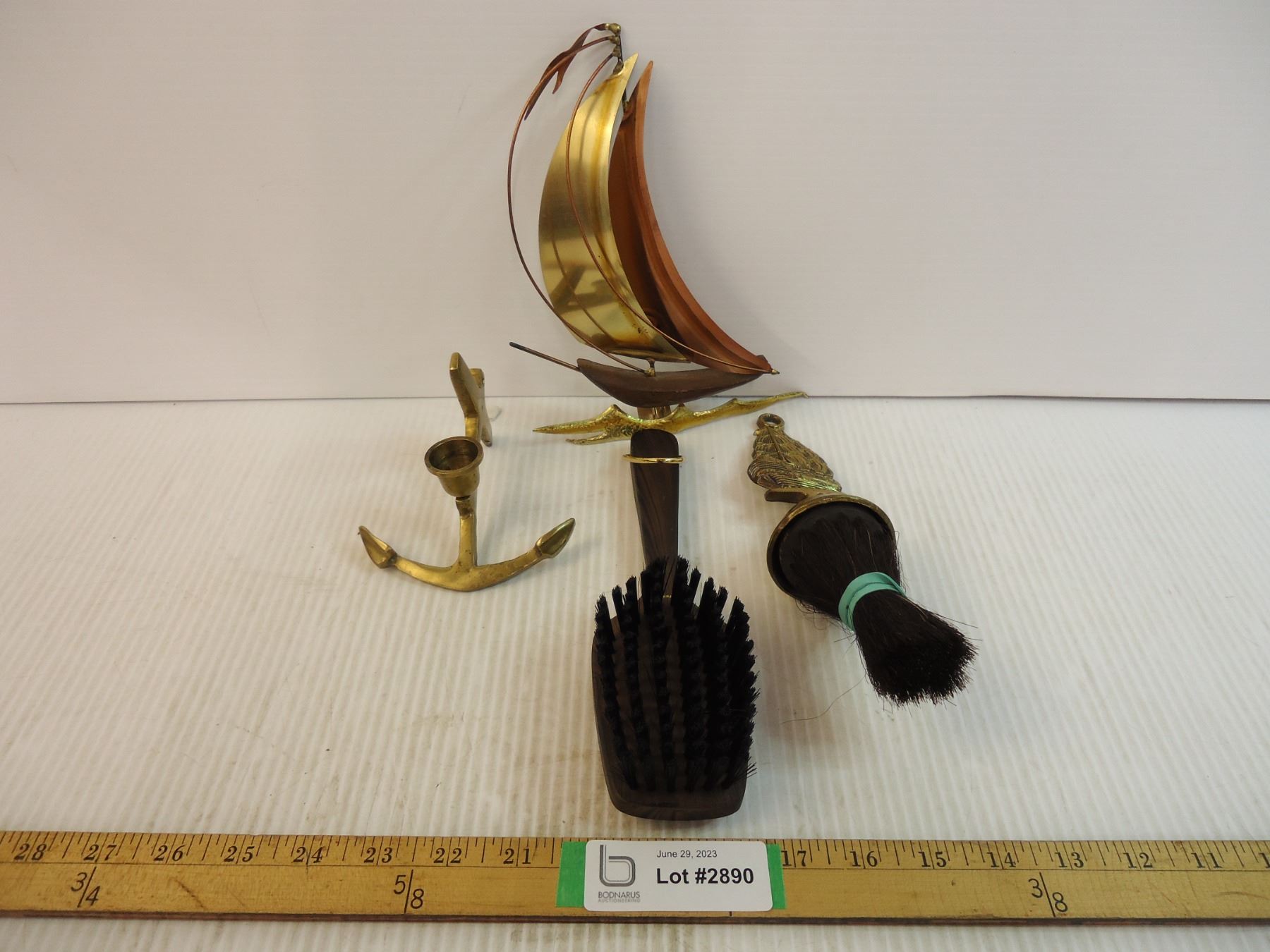 Nautical Brass/Copper Ship, Brush, Candle Holder and Clothes Brush