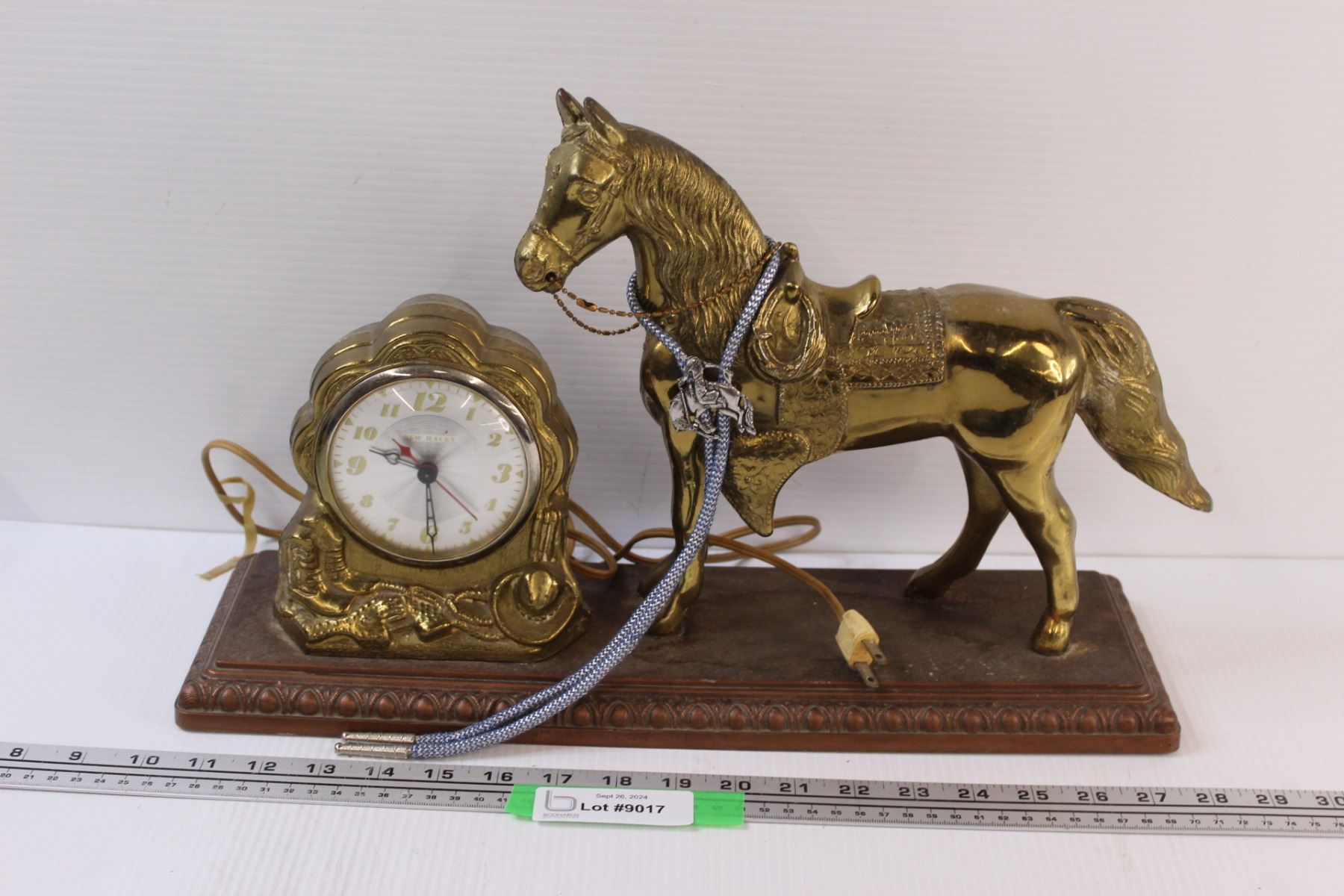 New Haven Clock & Metal Cast Horse Mantel Clock (Electric) - 18" x 11" x 6" & Cowboy Tie