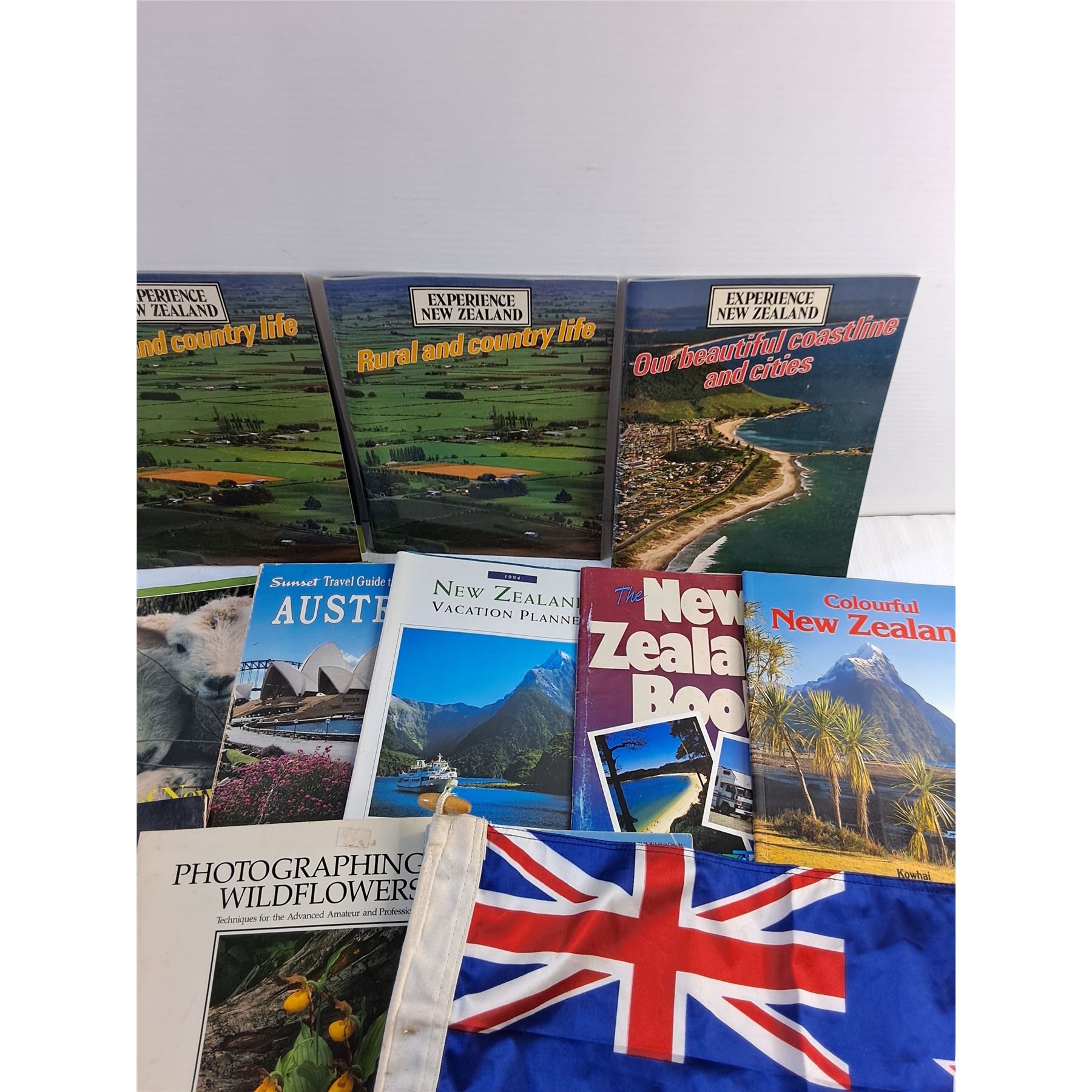 New Zealand Flag and Books - Rural and Country Life, NZ Vacation Planner and Australia Travel Guide