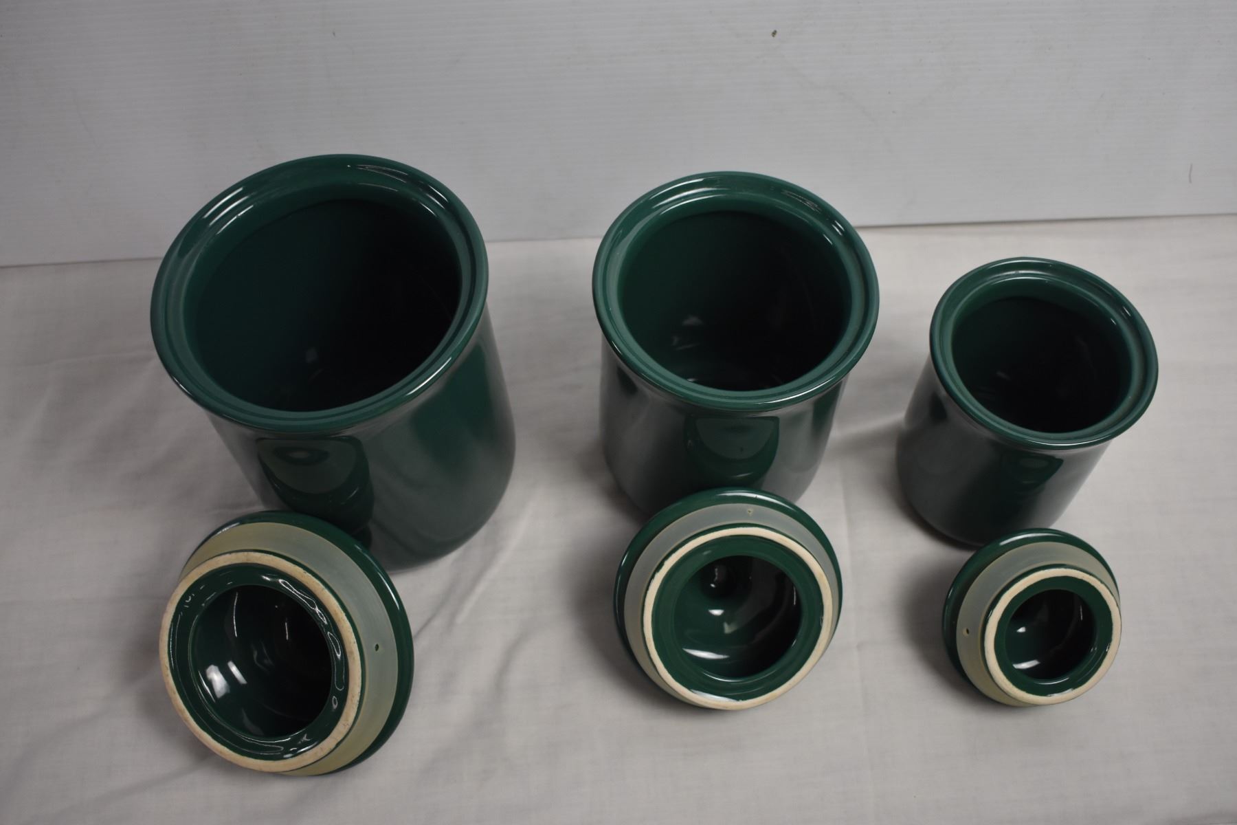 Newcor Stoneware cannister set, cream, sugar, flower, etc