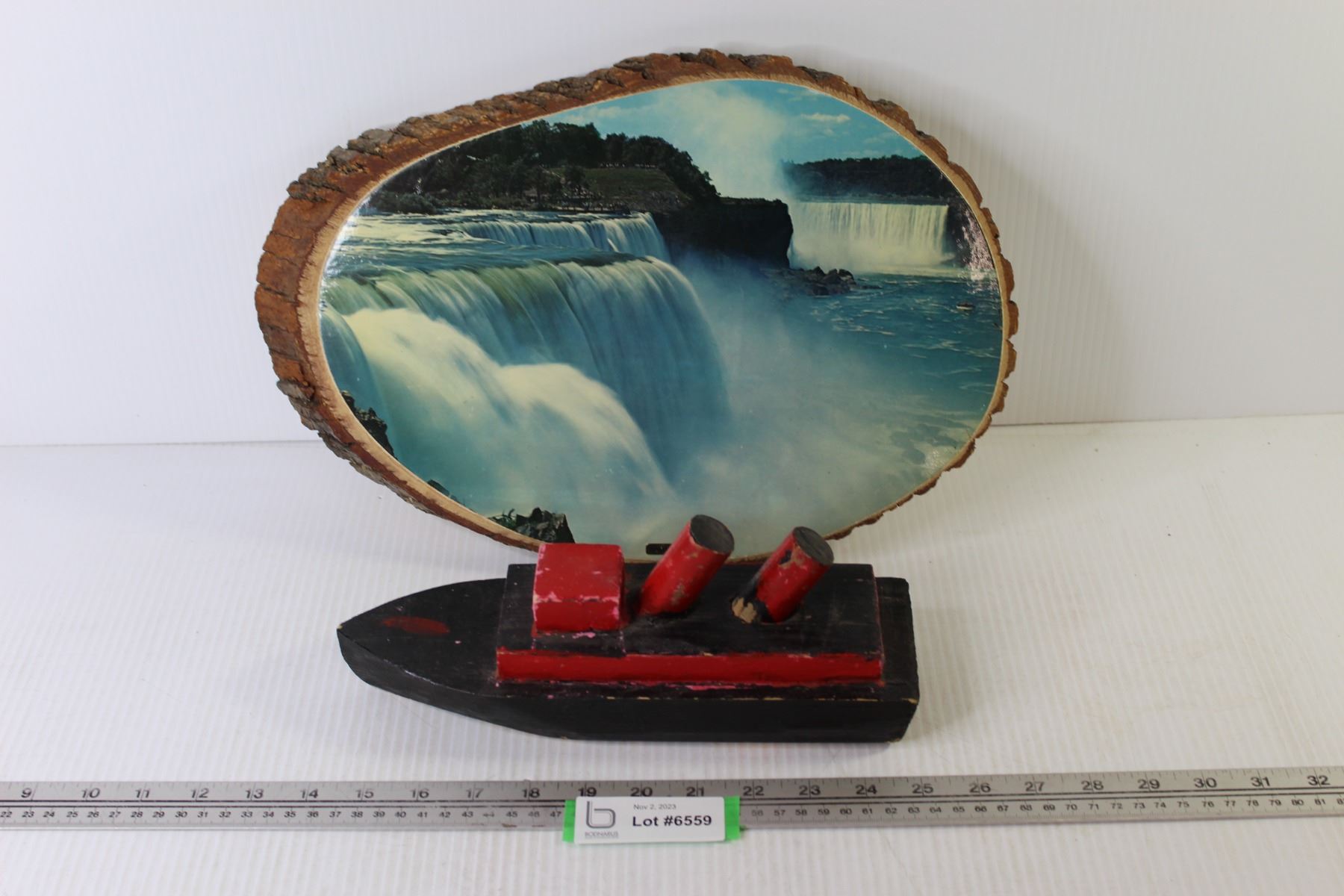 Niagara Falls Picture on Live Edge Slab - Home Made Wooden Boat