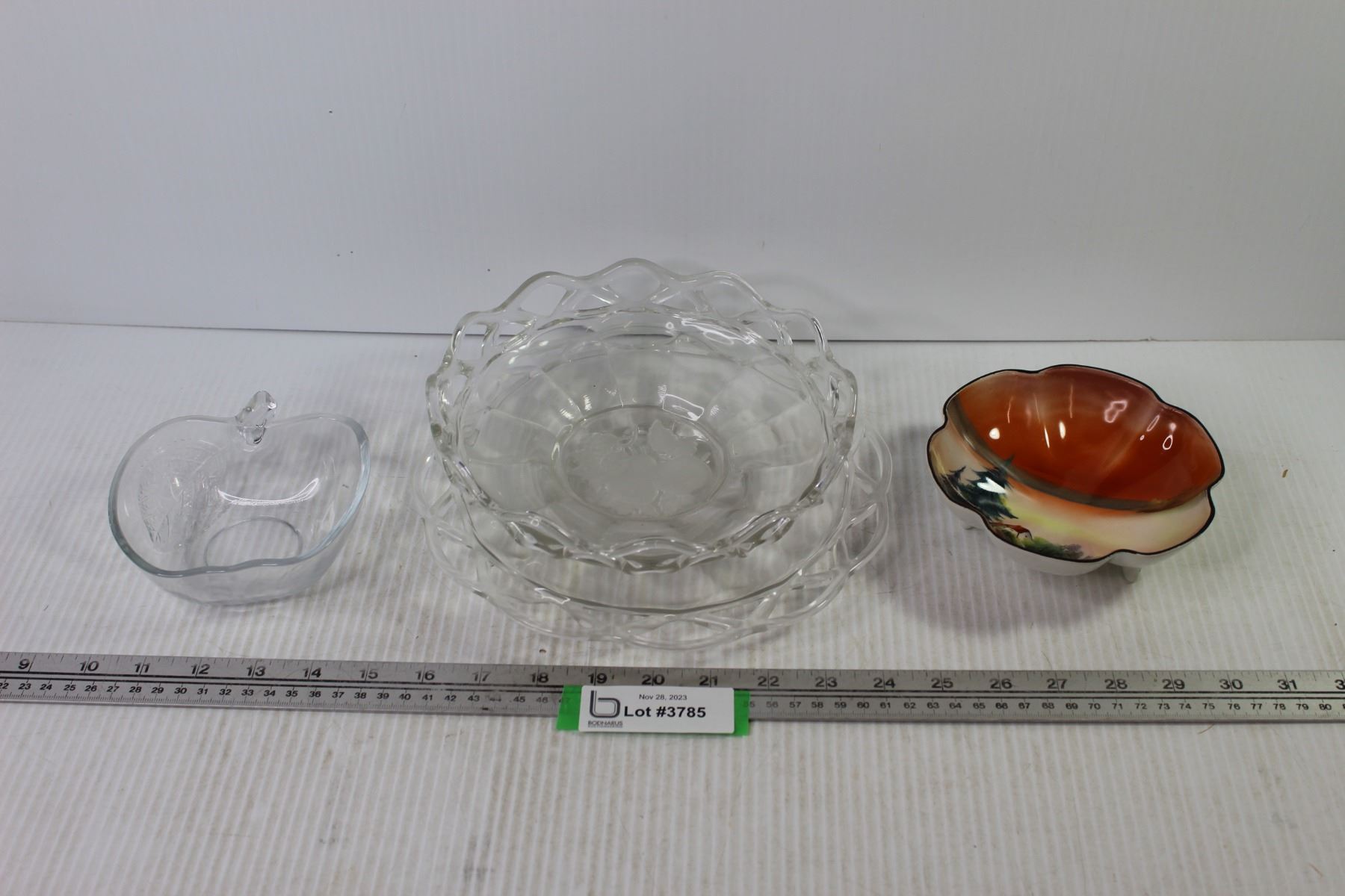 Noritake Dish - Glass Apple Dish - (2) Glass Open Lace Dishes