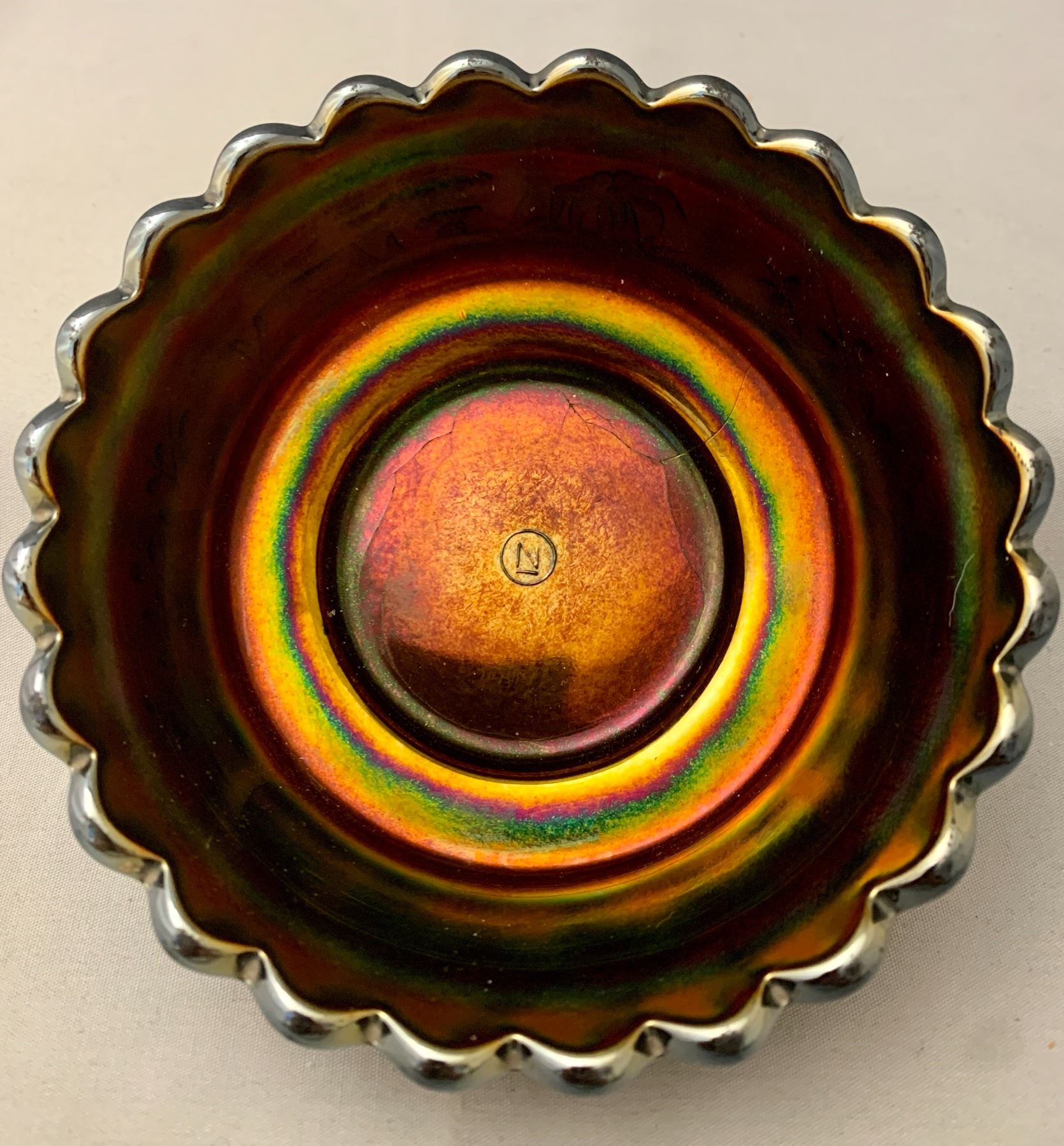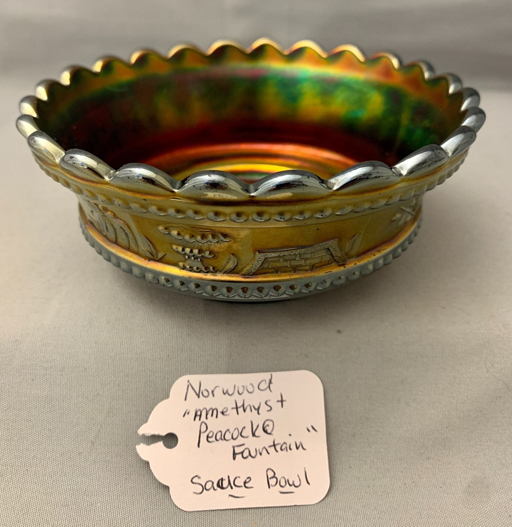 Northwood Carnival Amethyst "Peacock at the Fountain" Rare Ice Cream Sauce Bowl