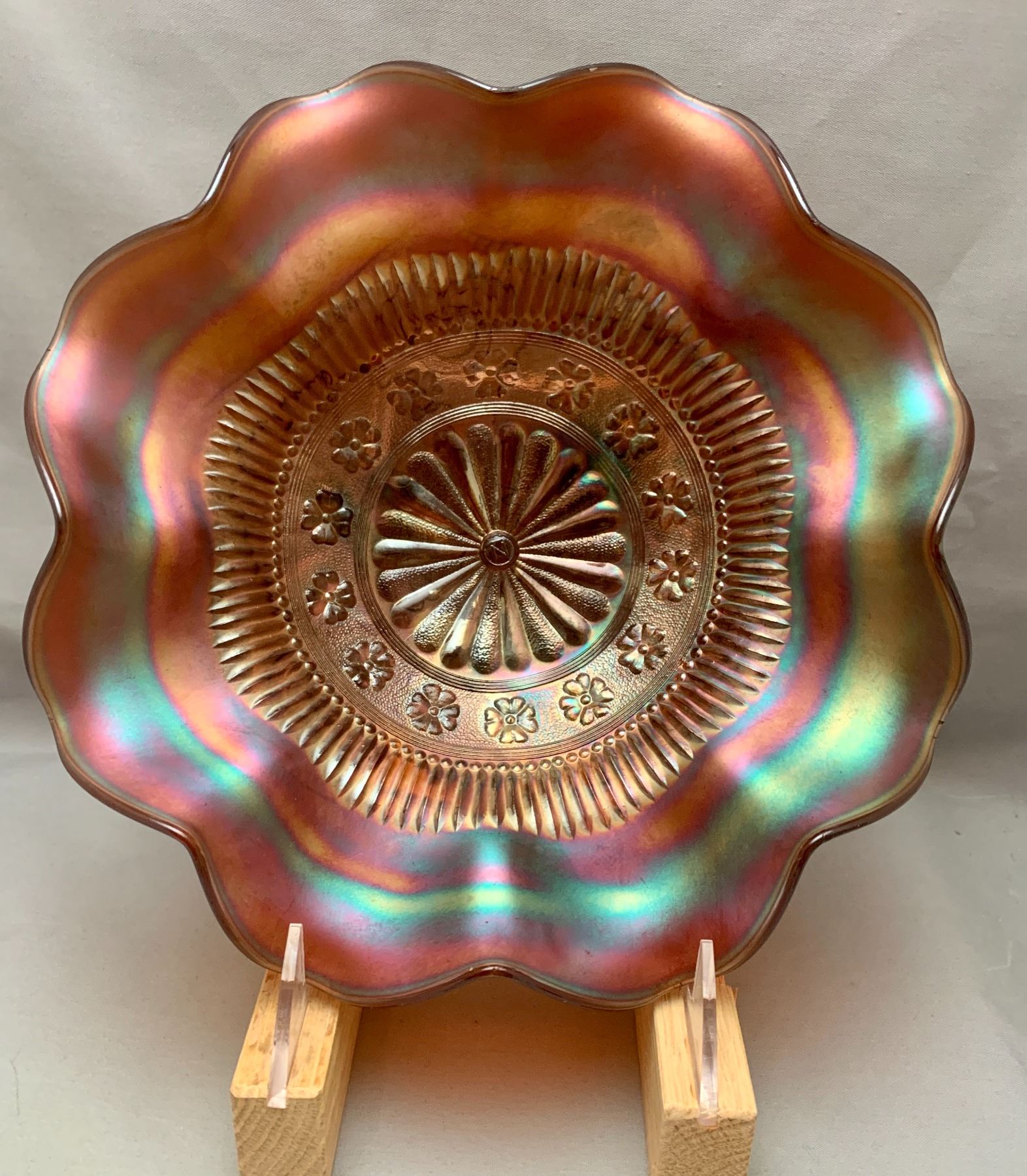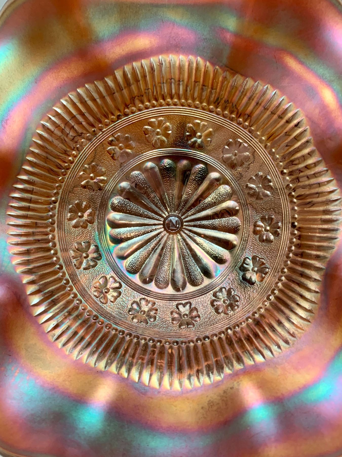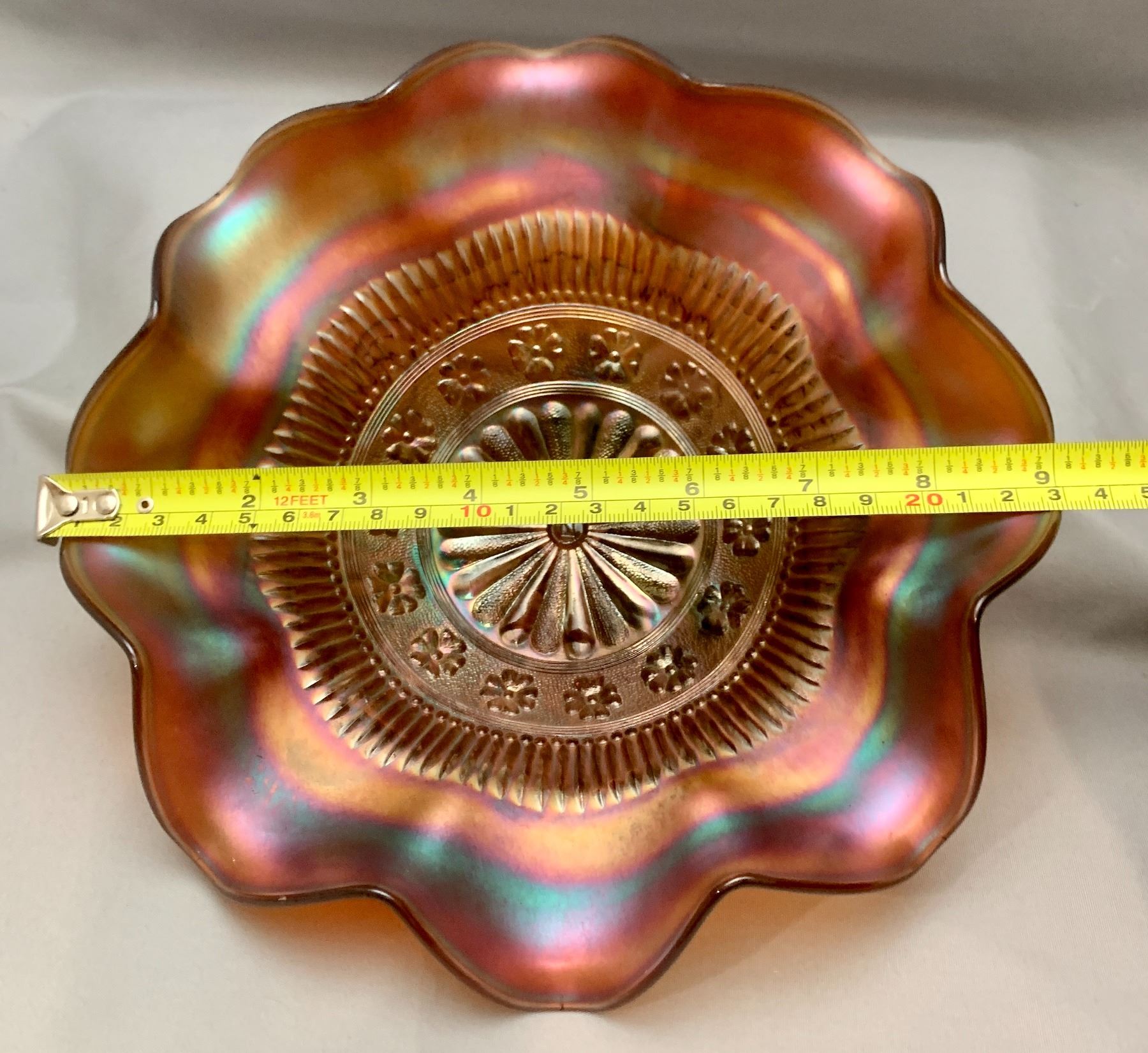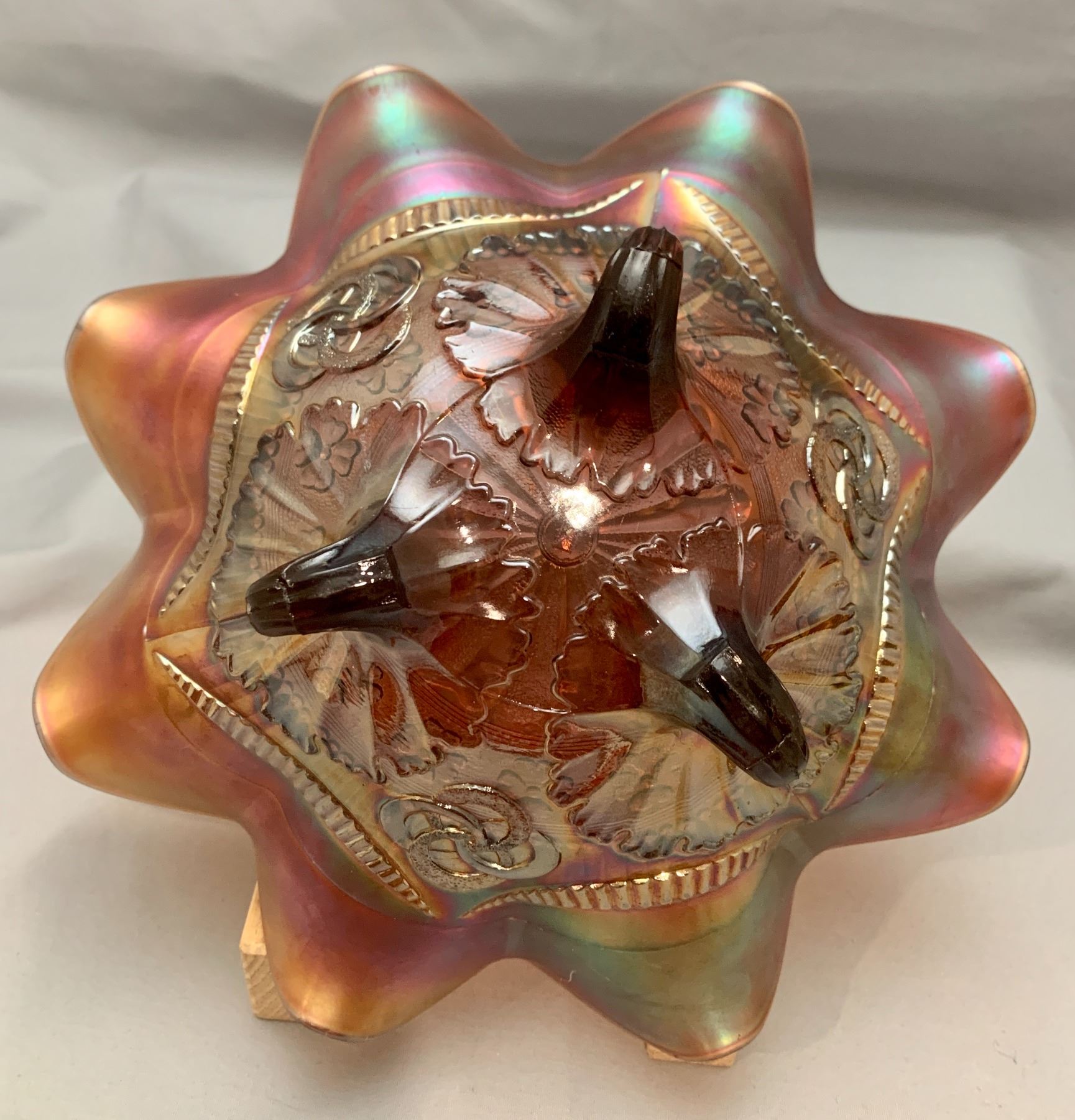 Northwood (Marked) Carnival Glass Amethyst "Rosettes" 3 Footed Ruffle Bowl (Circa 1909)