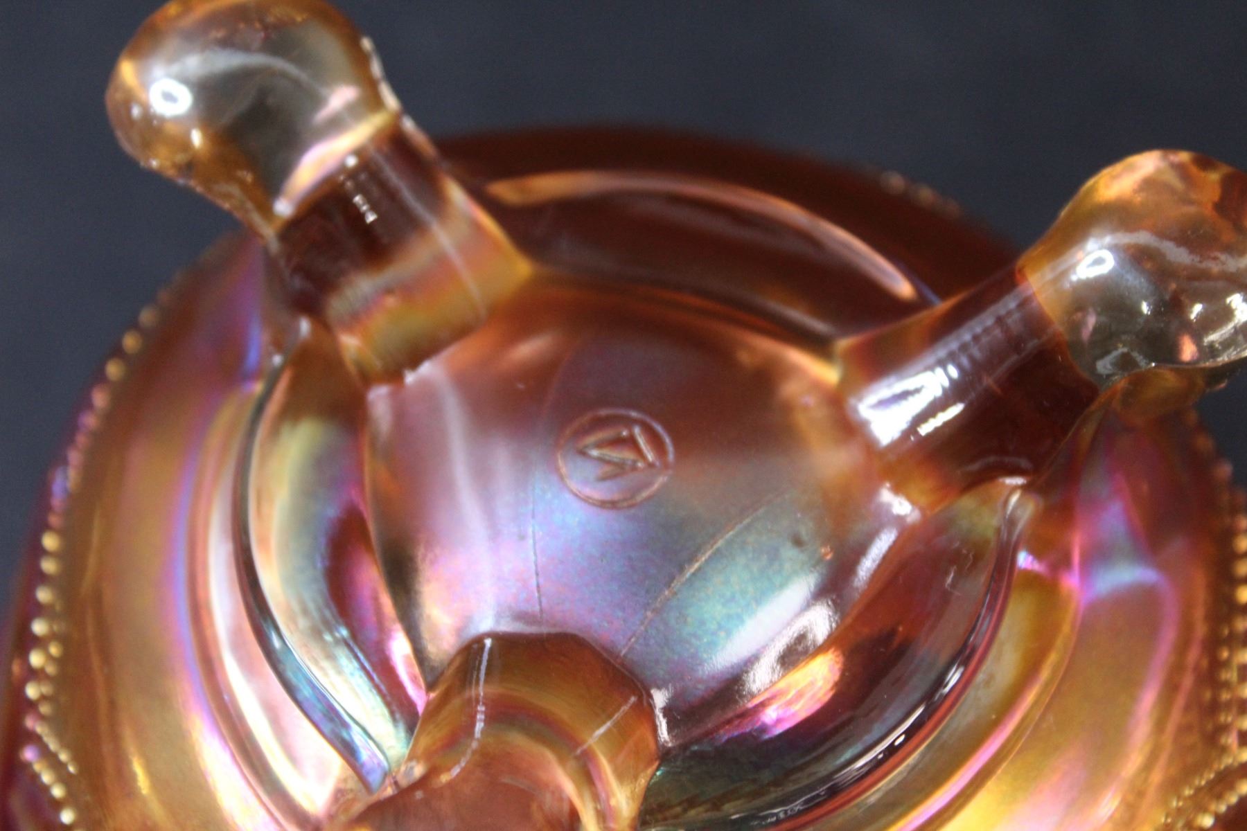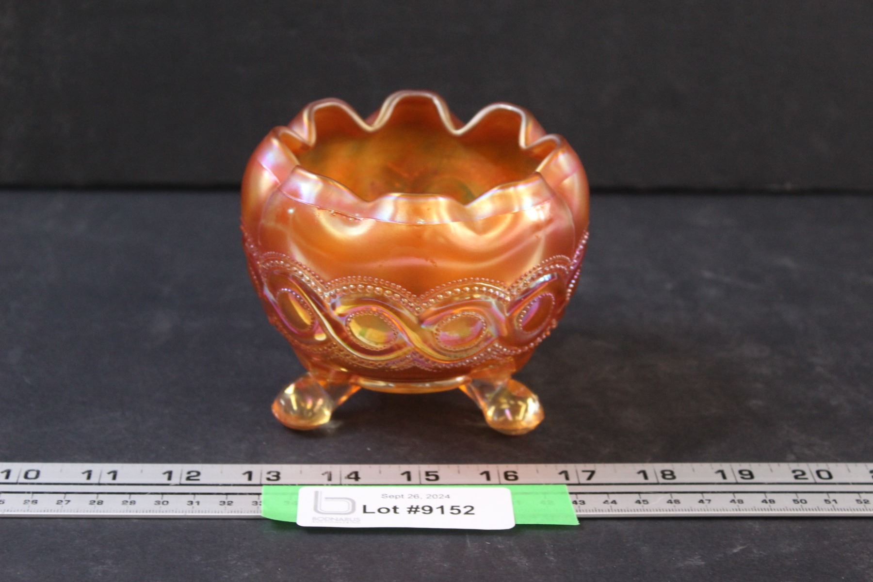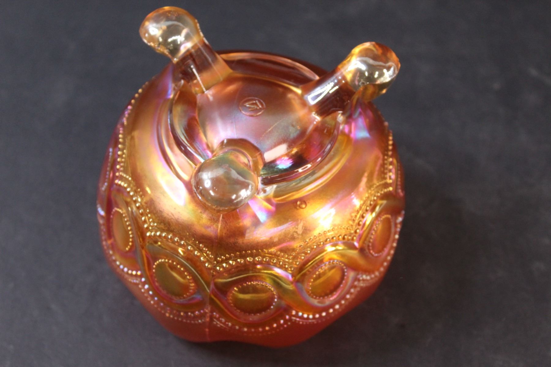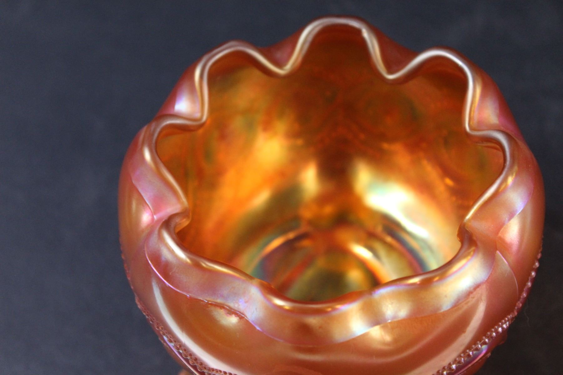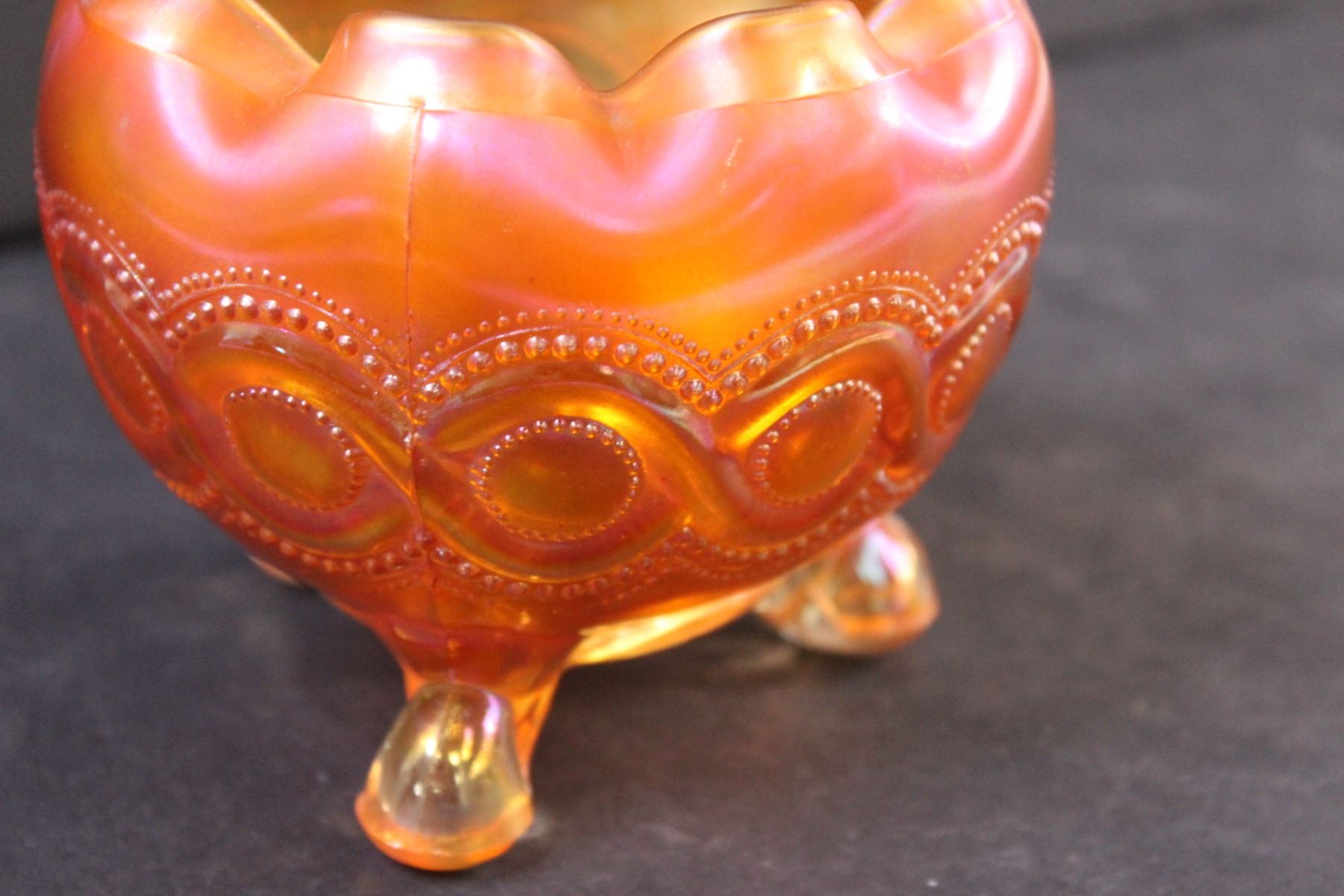 Northwoods Marigold Beaded Cable Carnival Glass Rose Bowl - 5" x 3"