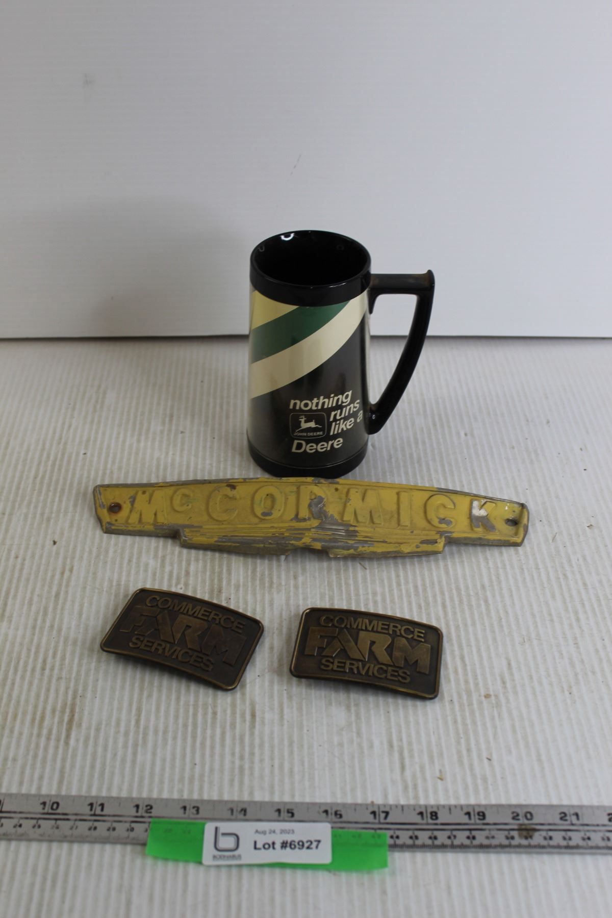 Nothing Runs Like Deere John Deere Mug, McCormick Tractor Emblem, (2) Commerce Farm Services Belt Buckle