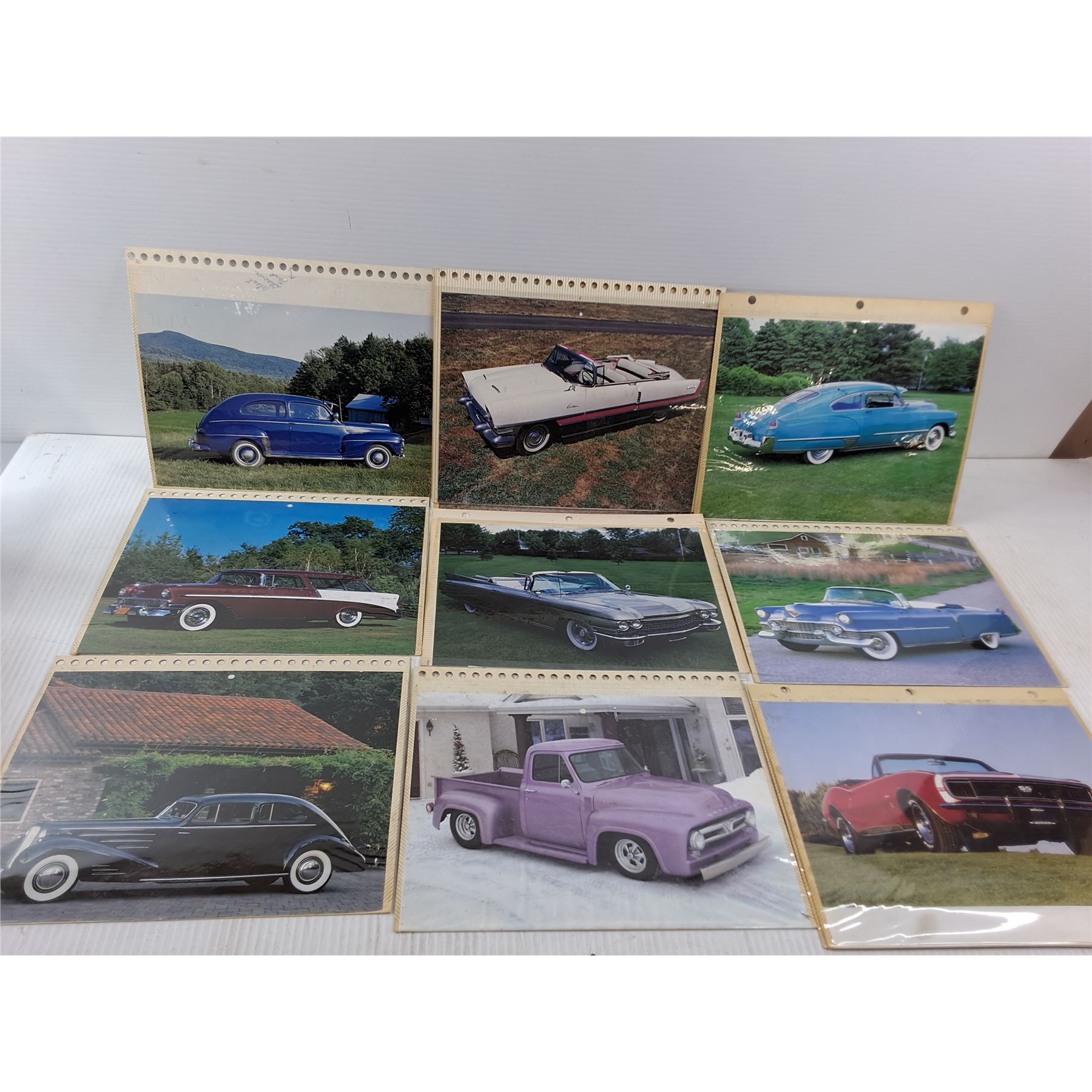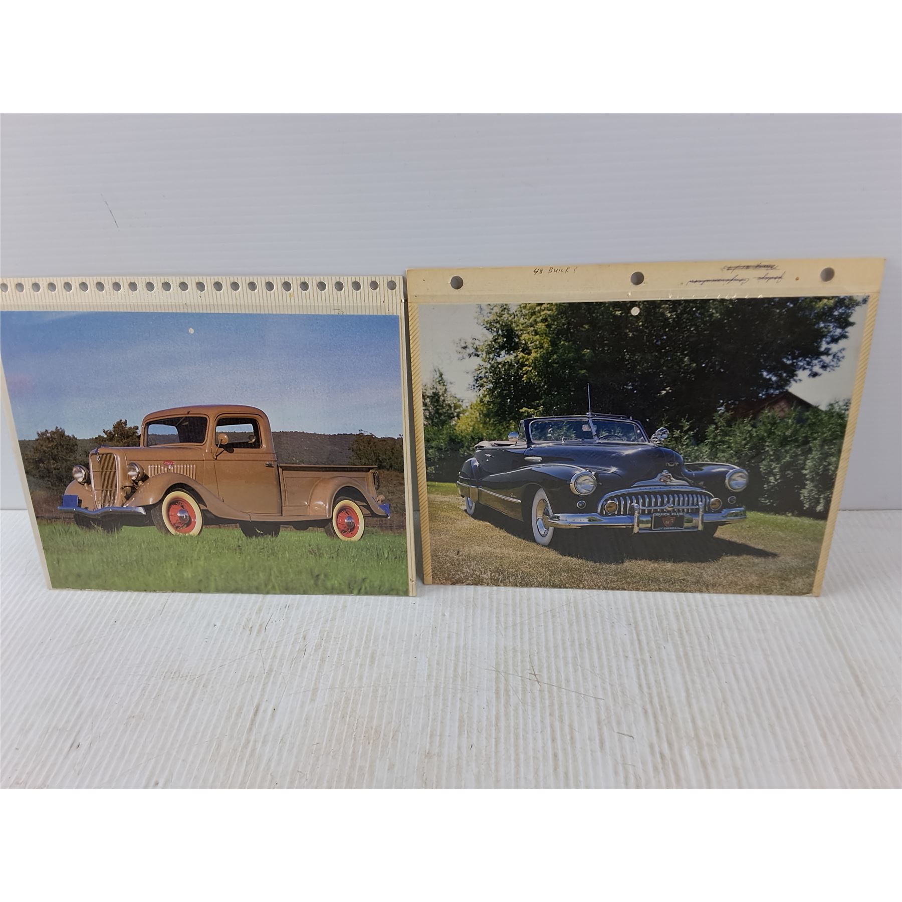 Lots of photos of old cars and trucks all in album pages
