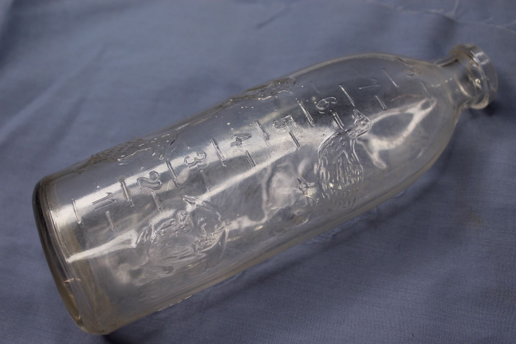 Nursery Rhyme Baby Bottle - Kidney Pill Container w/Vintage Game of Jacks
