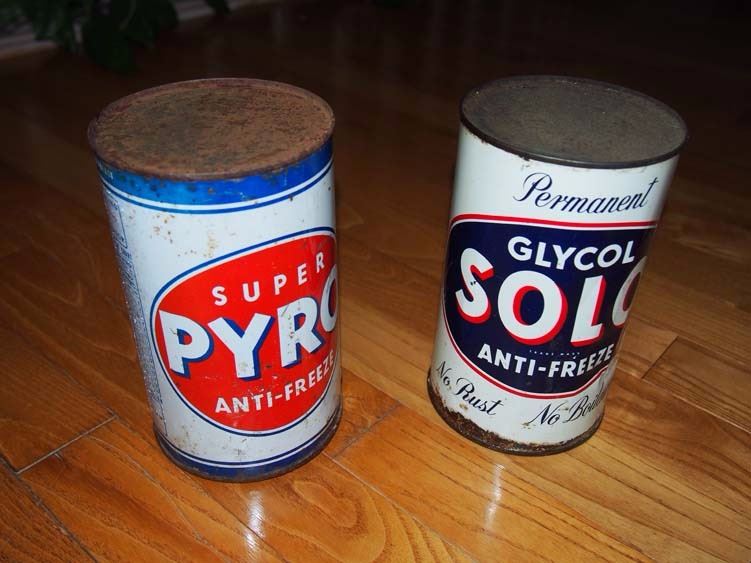 Oil Tins (2) (Super Pyro Anti-Freeze, Glycol Solo Anti-Freeze)