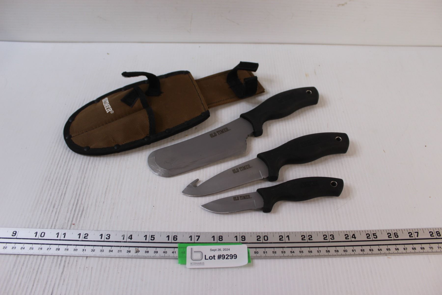 Old Timer Three- Piece Hunting Knife & Meat Cleaver Set in Scabbard - New