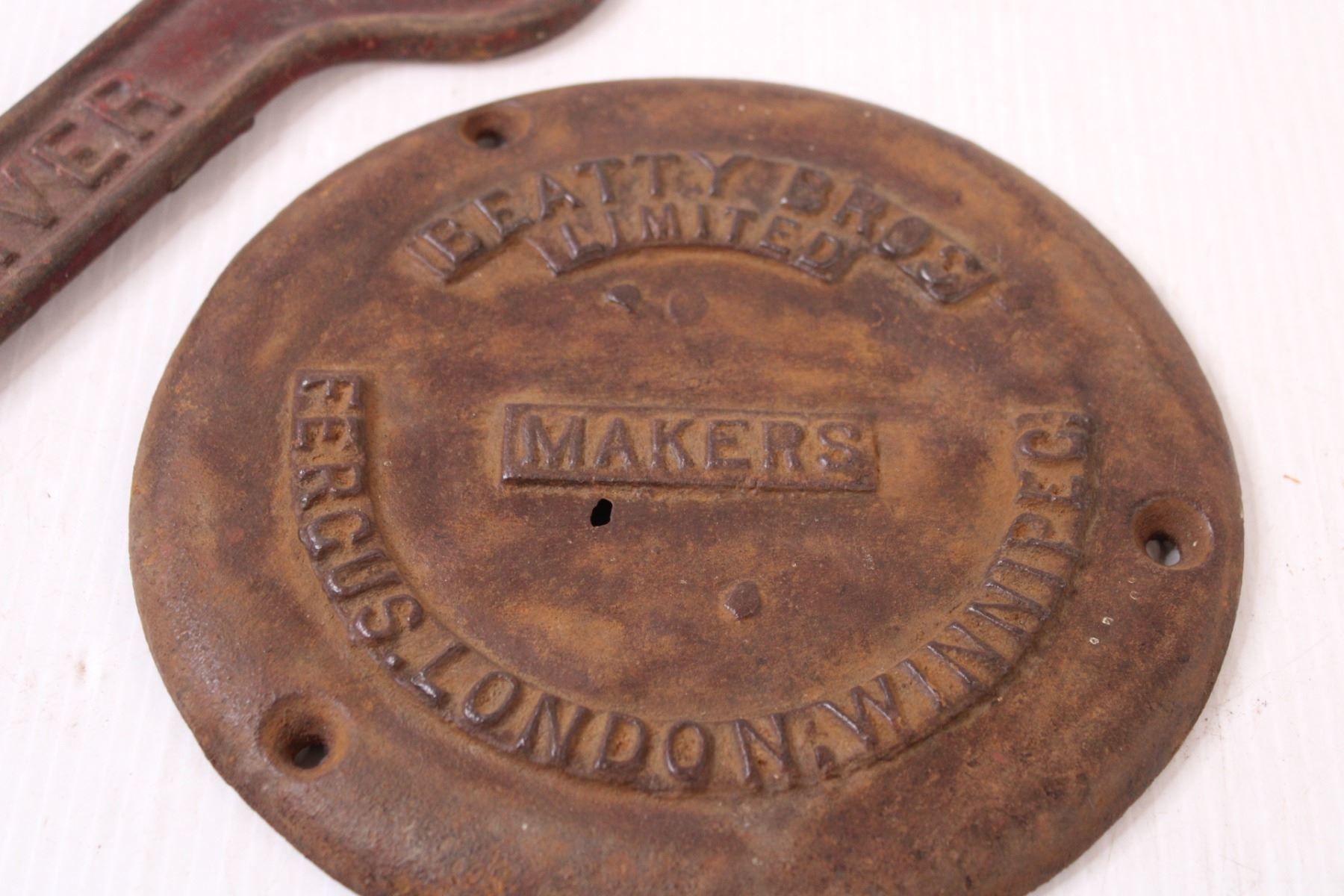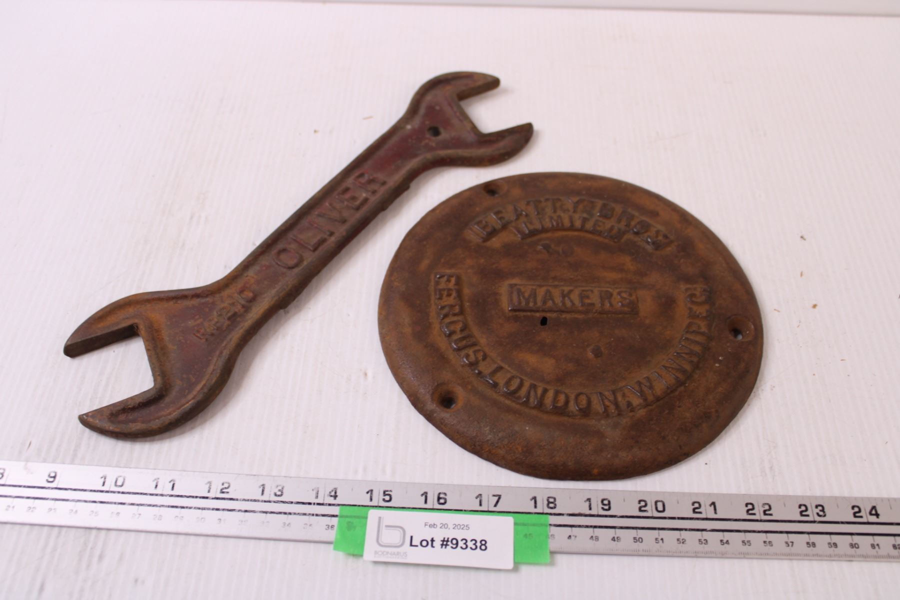 Oliver Co 1 3/4" x 13" Long Wrench & Beatty Bros LTD. Cover Plate - 8.5" Diameter
