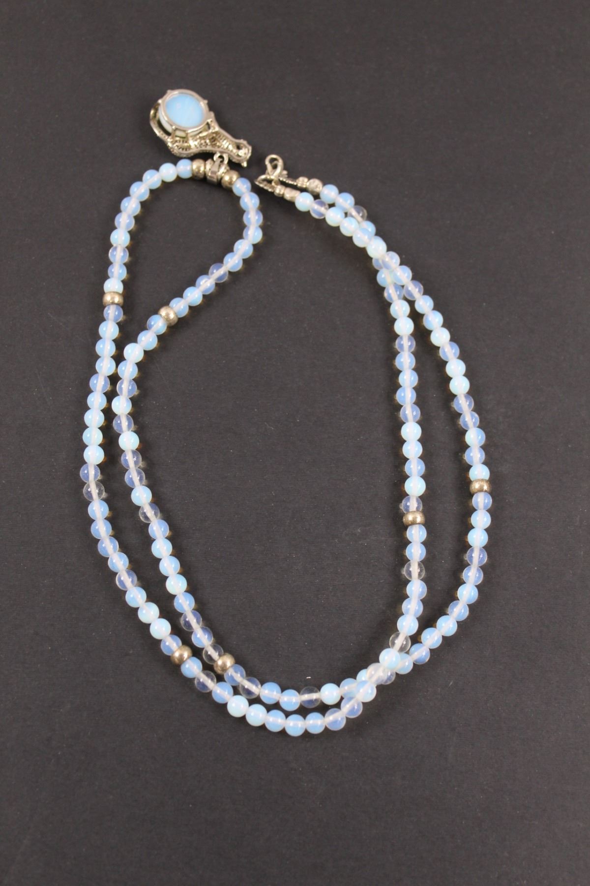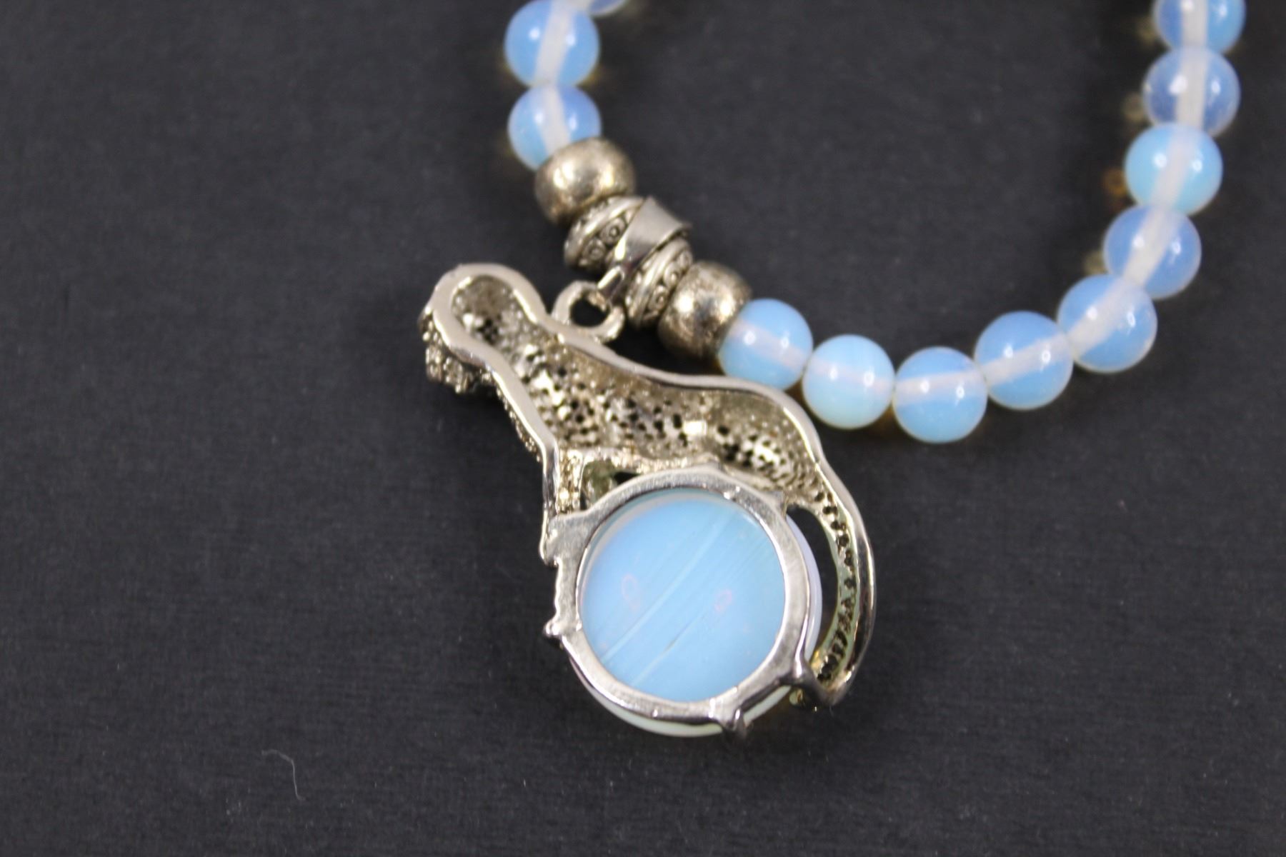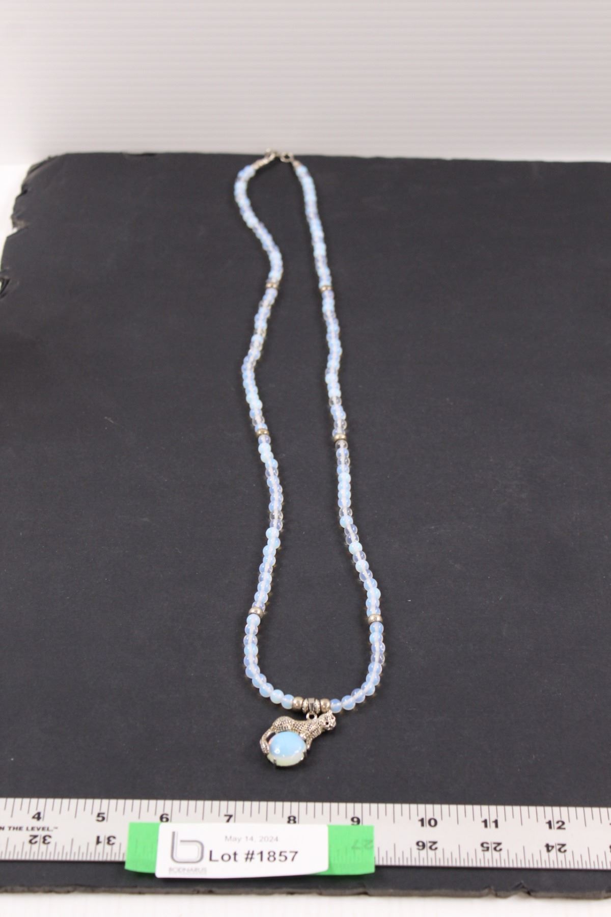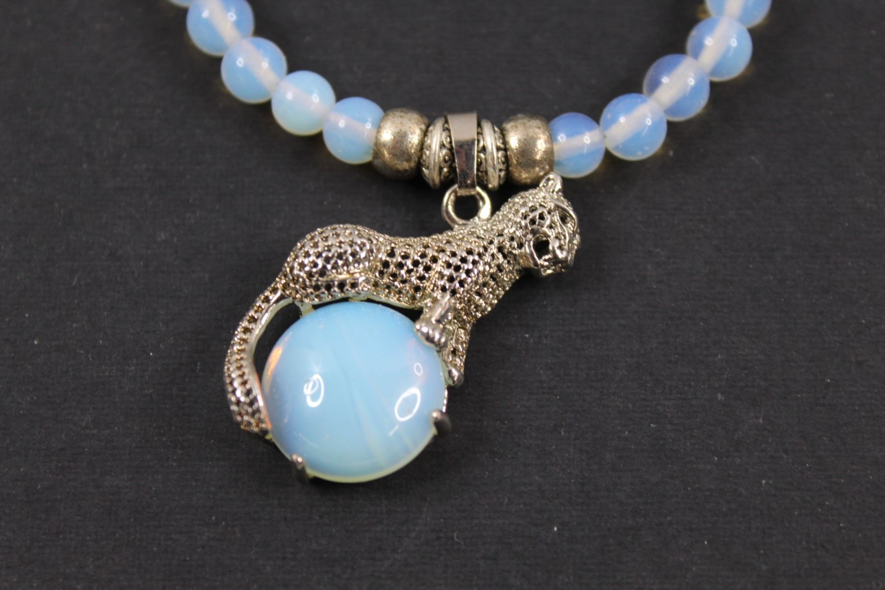 Opaline Beaded Necklace w/Leopard Pendant - 34" Long