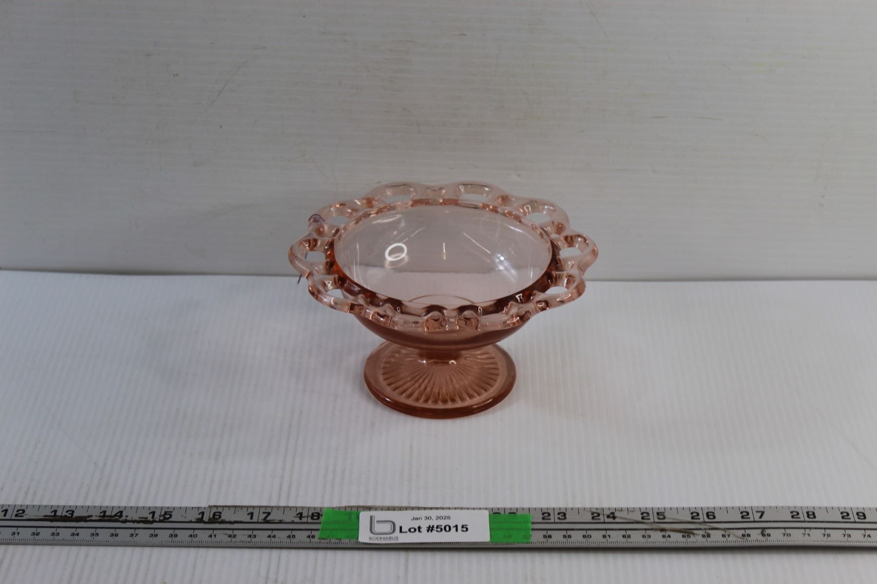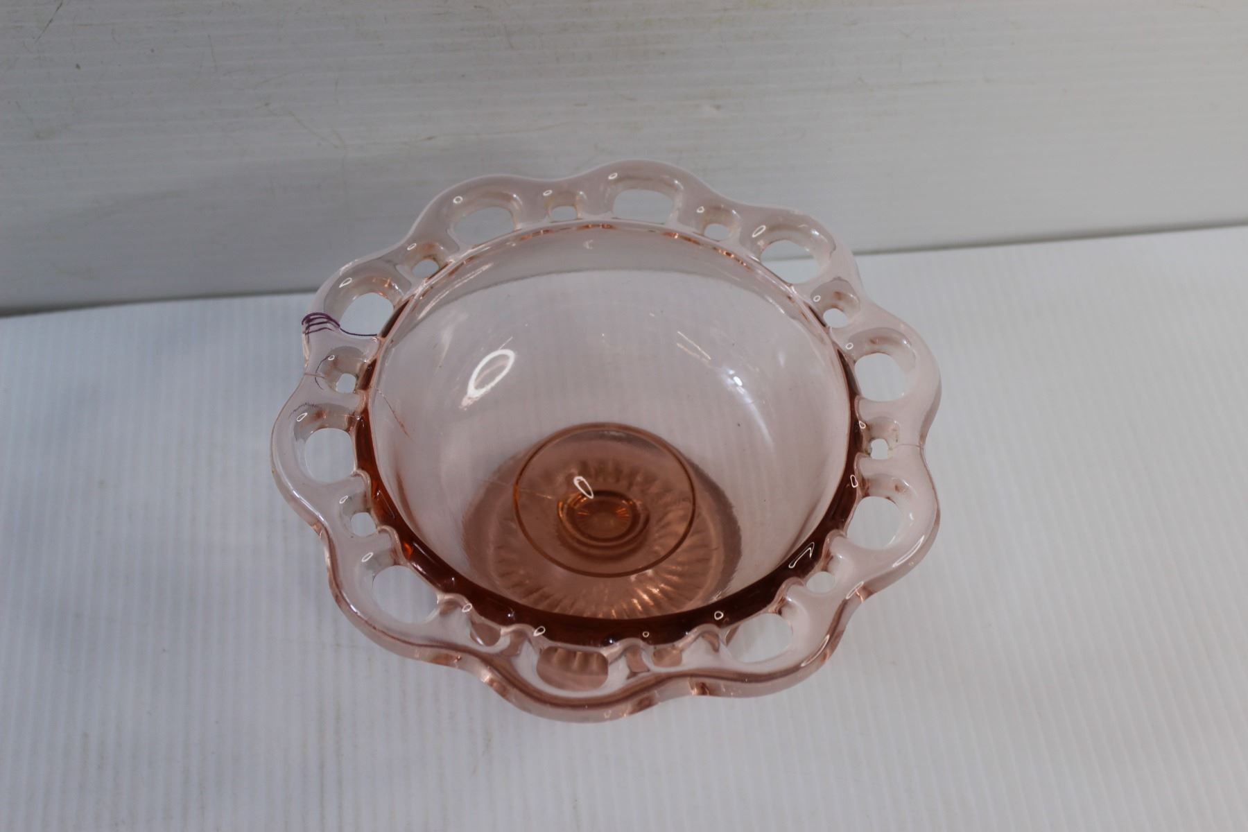 Open Lace Edge Pink Depression Glass Candy Bowl