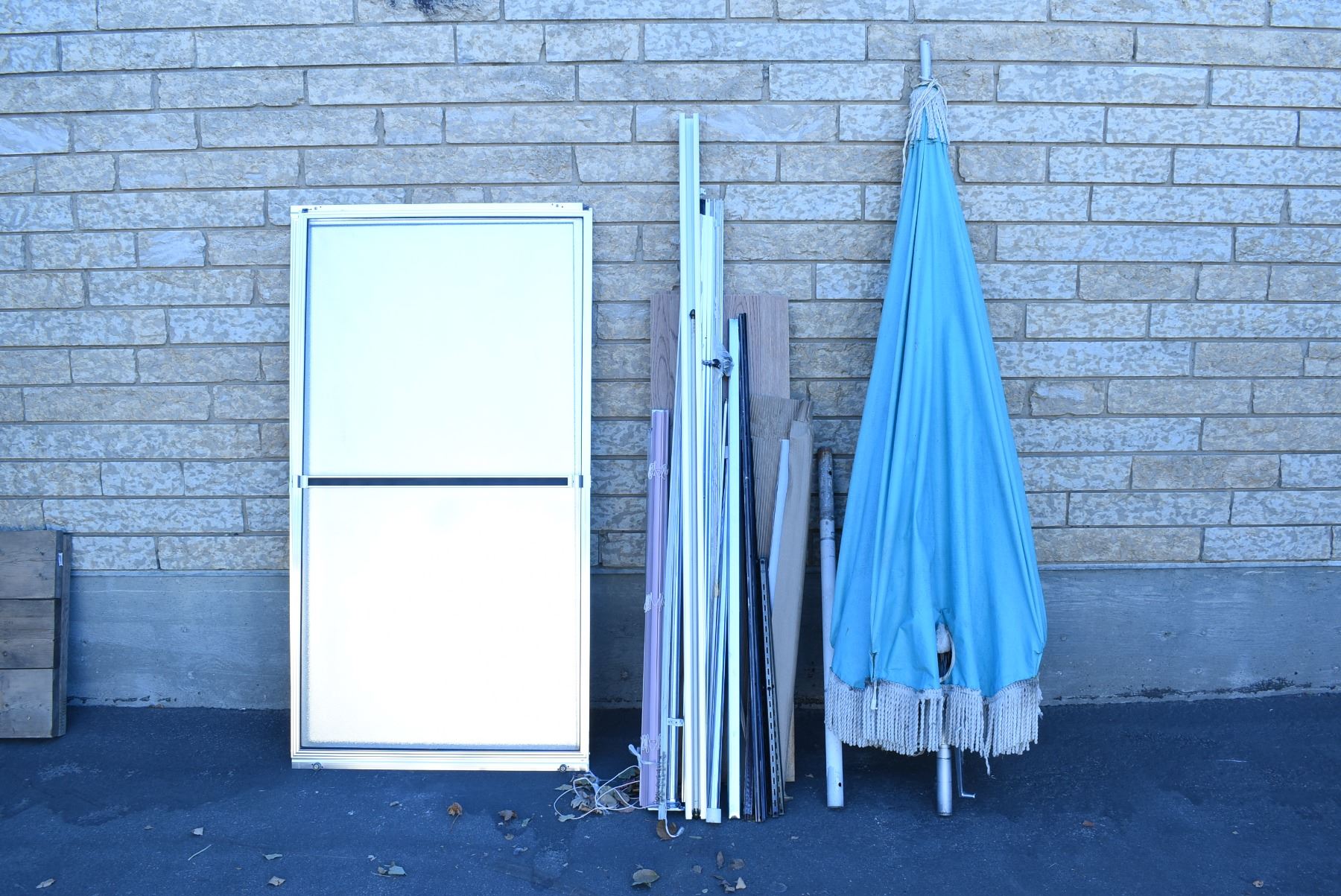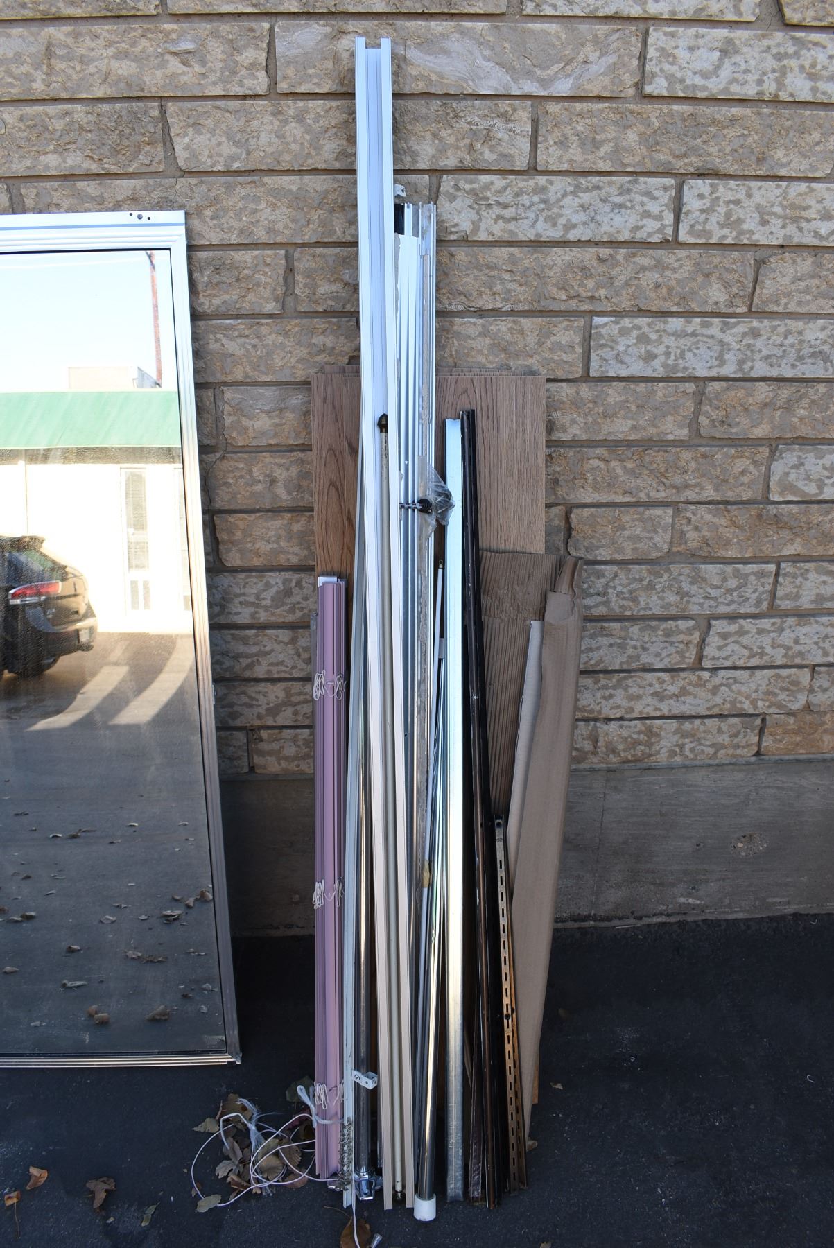 *Outdoor Items - Sliding Glass Shower Door/Mirror, Shelving/Rack Brackets + Shelves