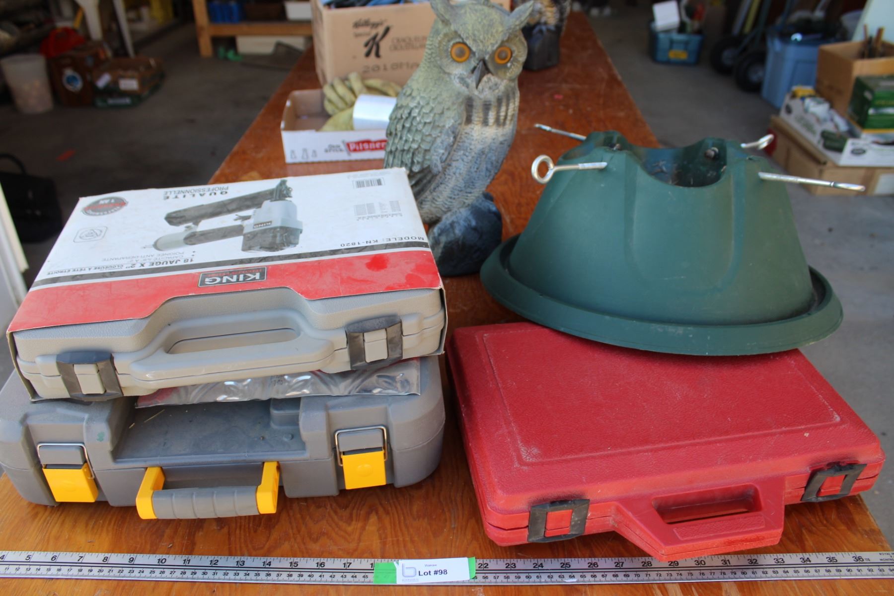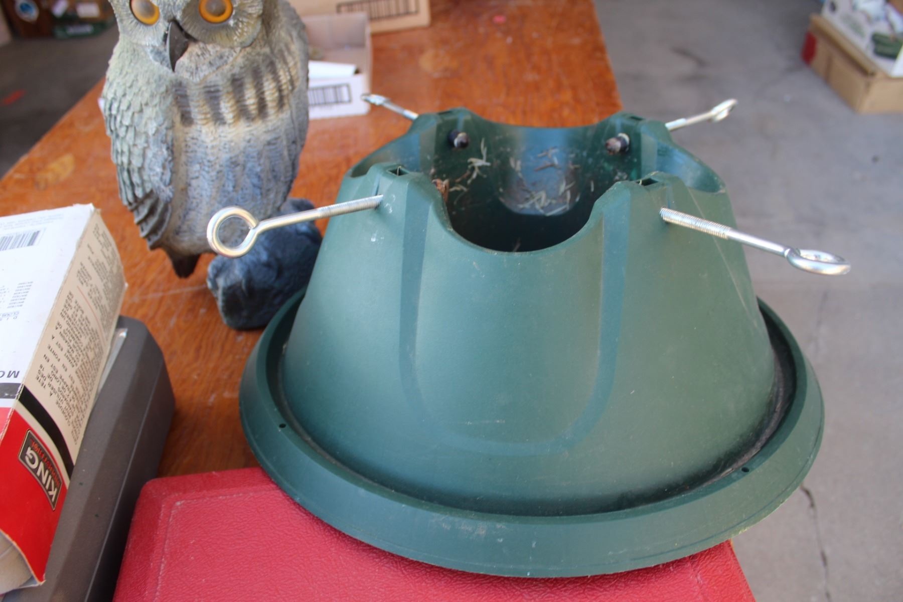 Outdoor Owl & Christmas Tree Stand, (#) Empty Tool Cases