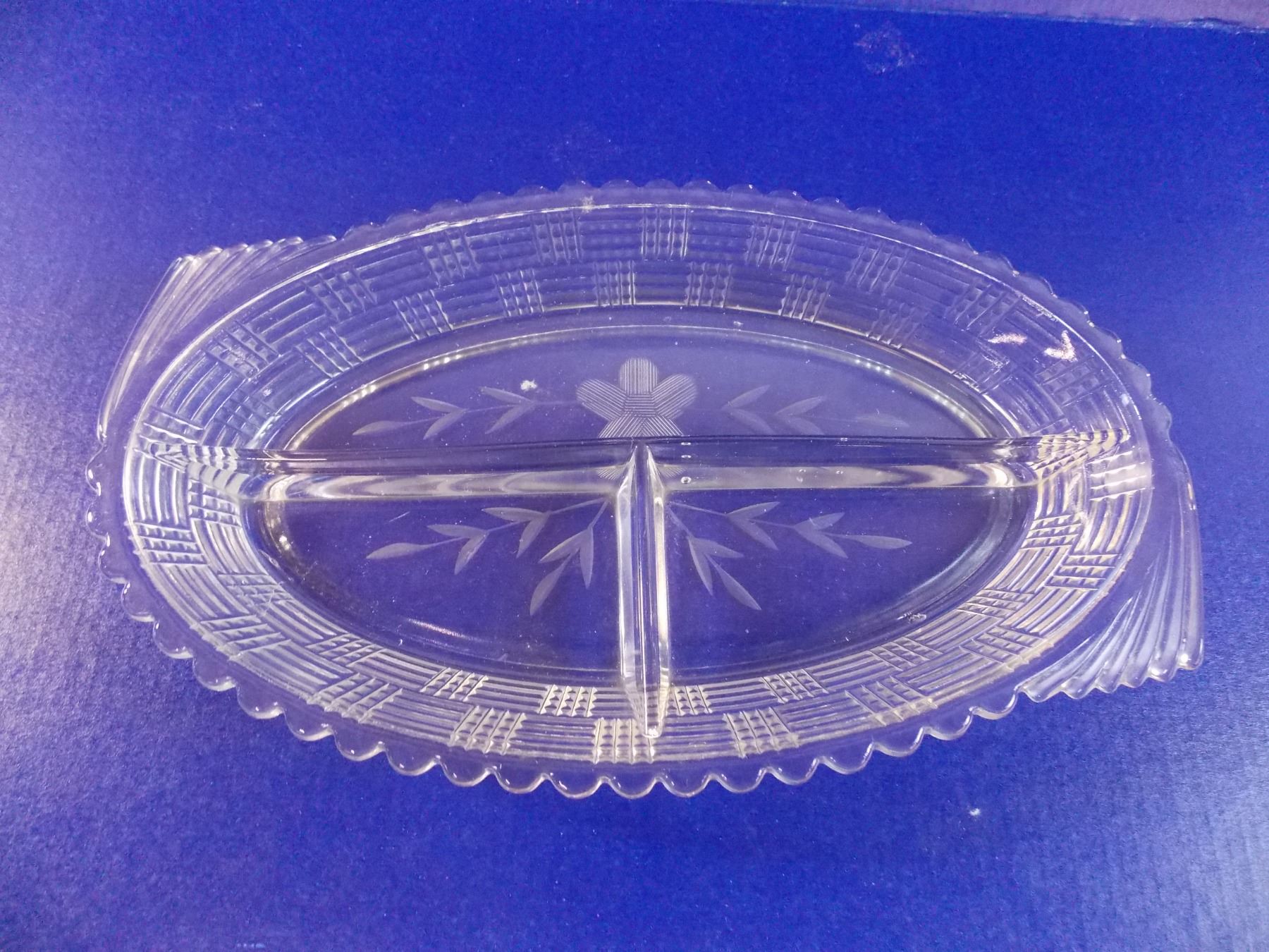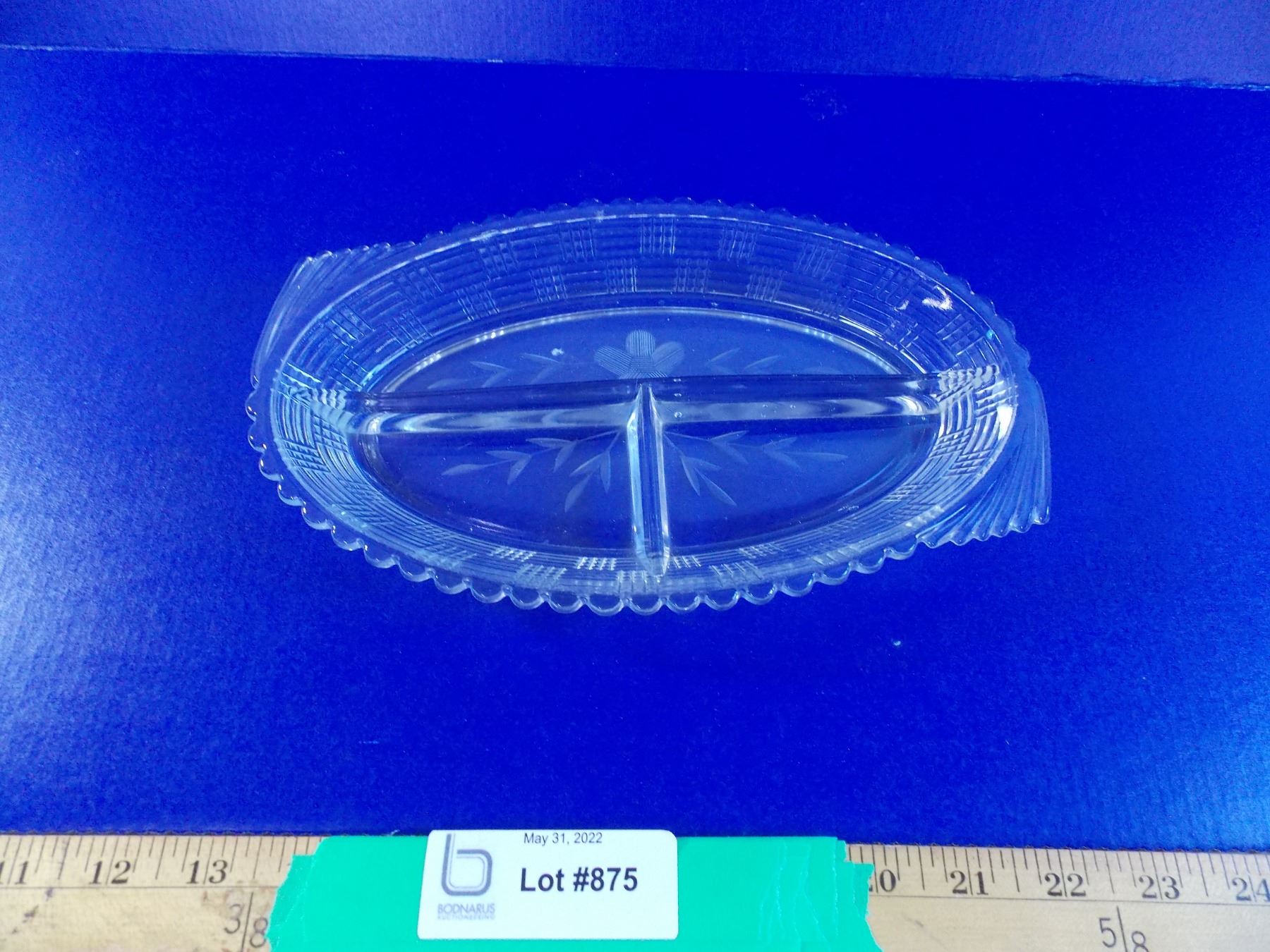 Oval glass divided dish (1940's?) - 5"x9"