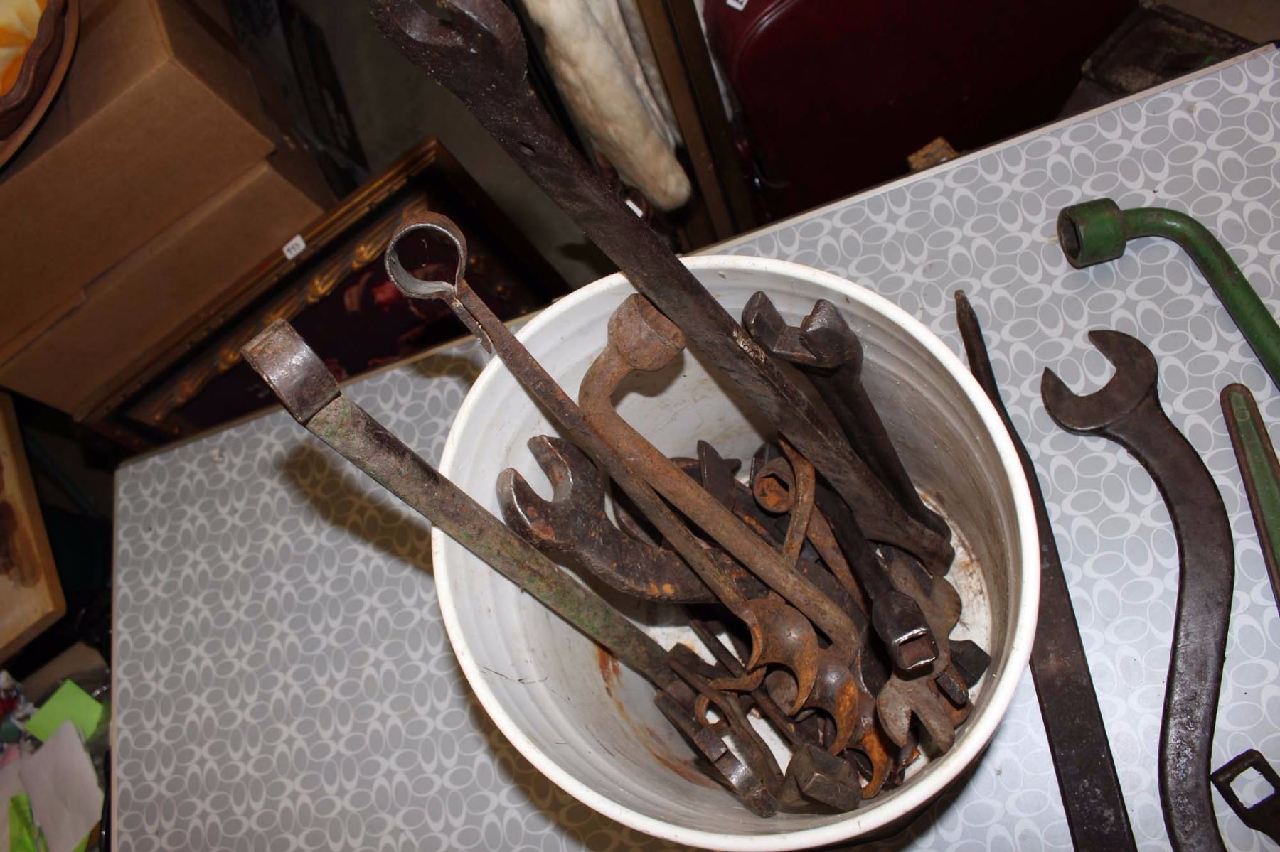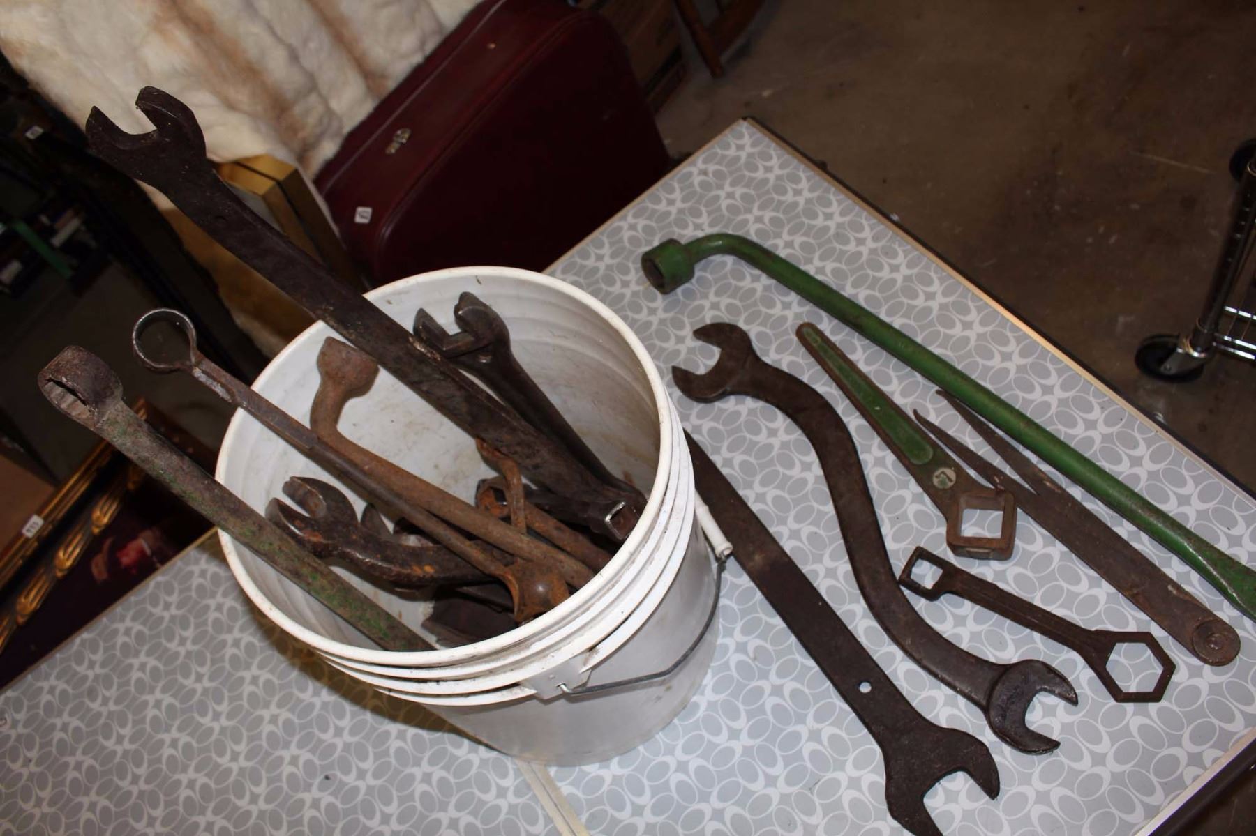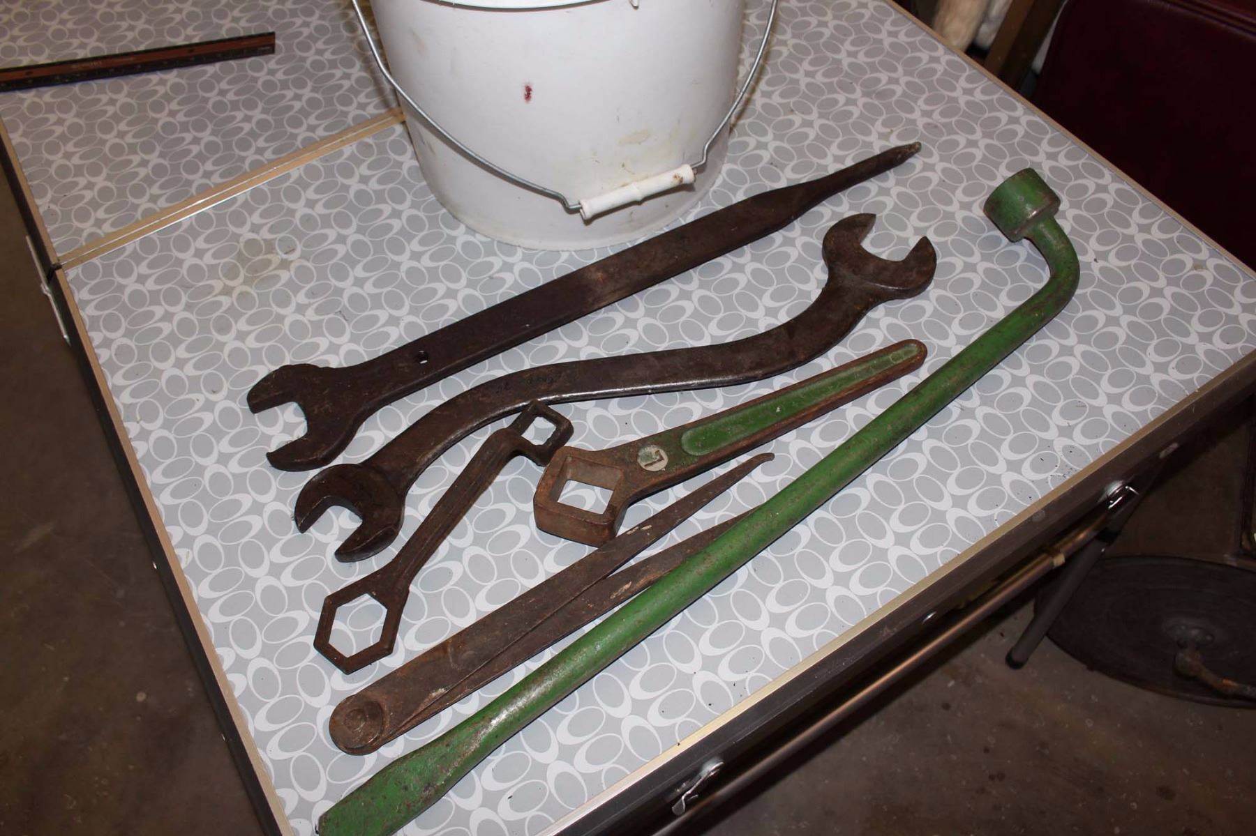 Pail of Antique Wrenches (Deere, Massey, IHC, Etc;)
