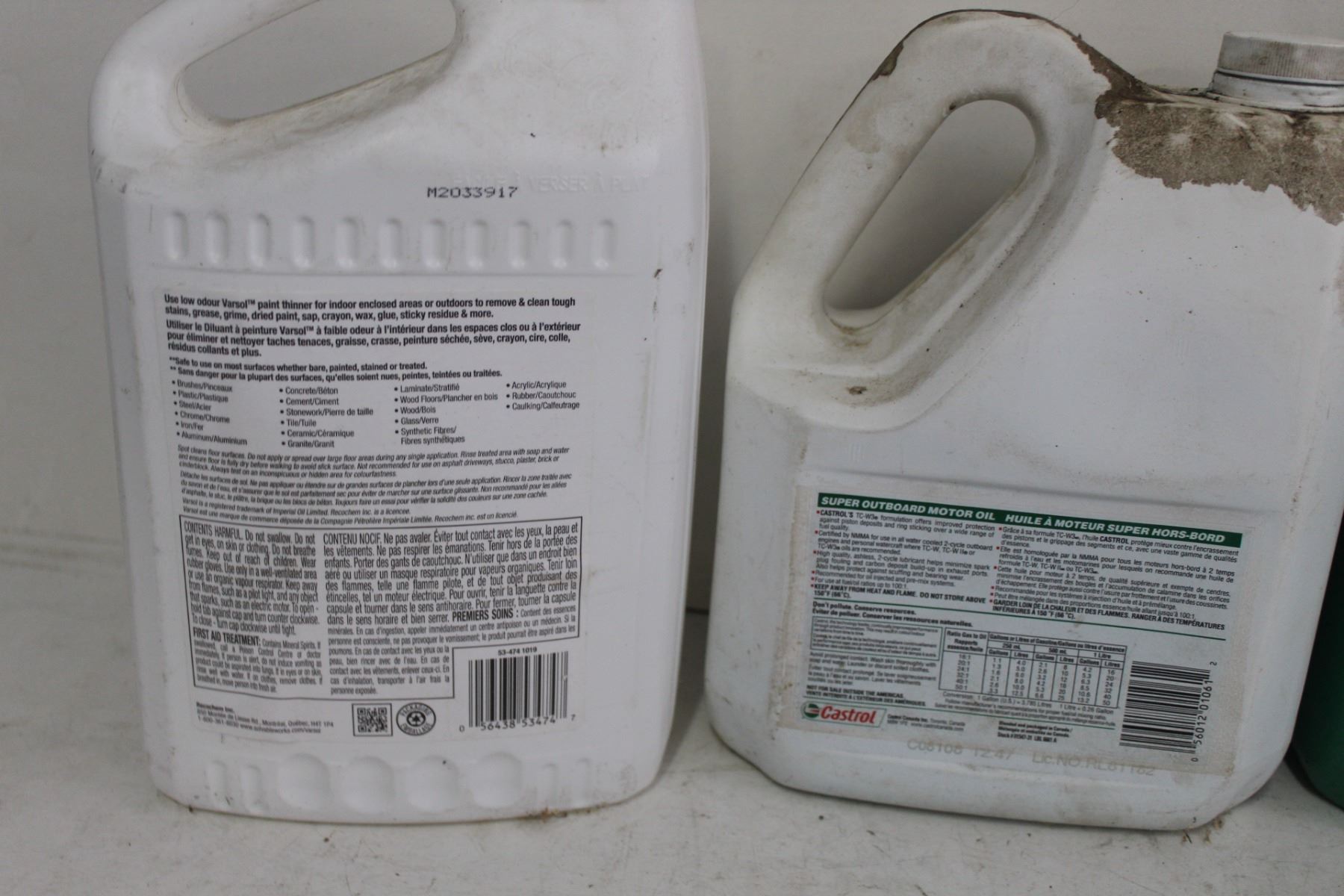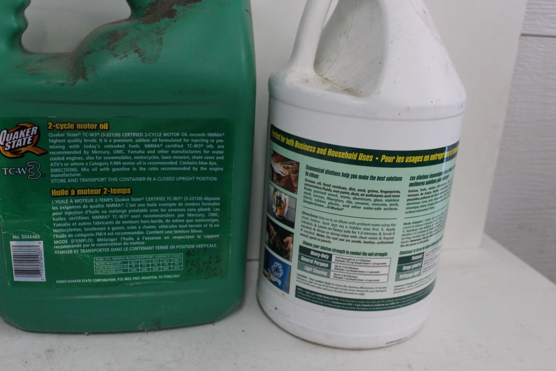 Paint Thinner, Outboard Motor Oil, Simple Green Cleaner, 2 Cycle Motor Oil