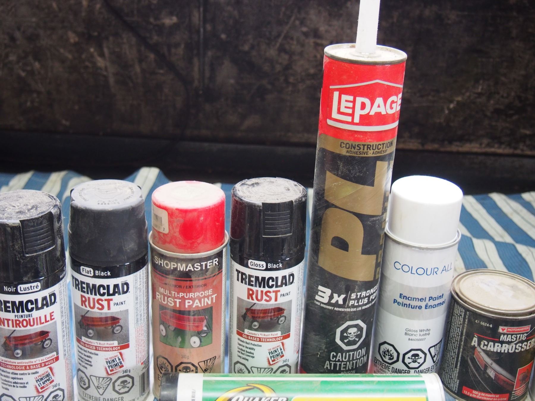 Painting Supplies, Adhesive Grease and Misc in Crate