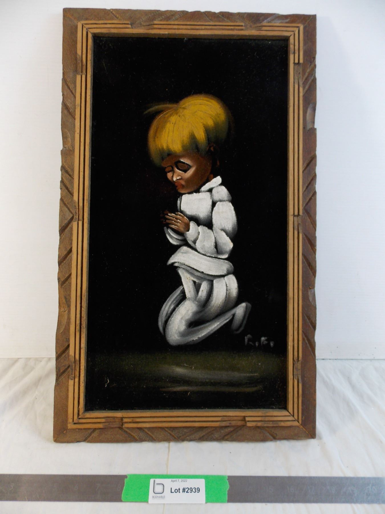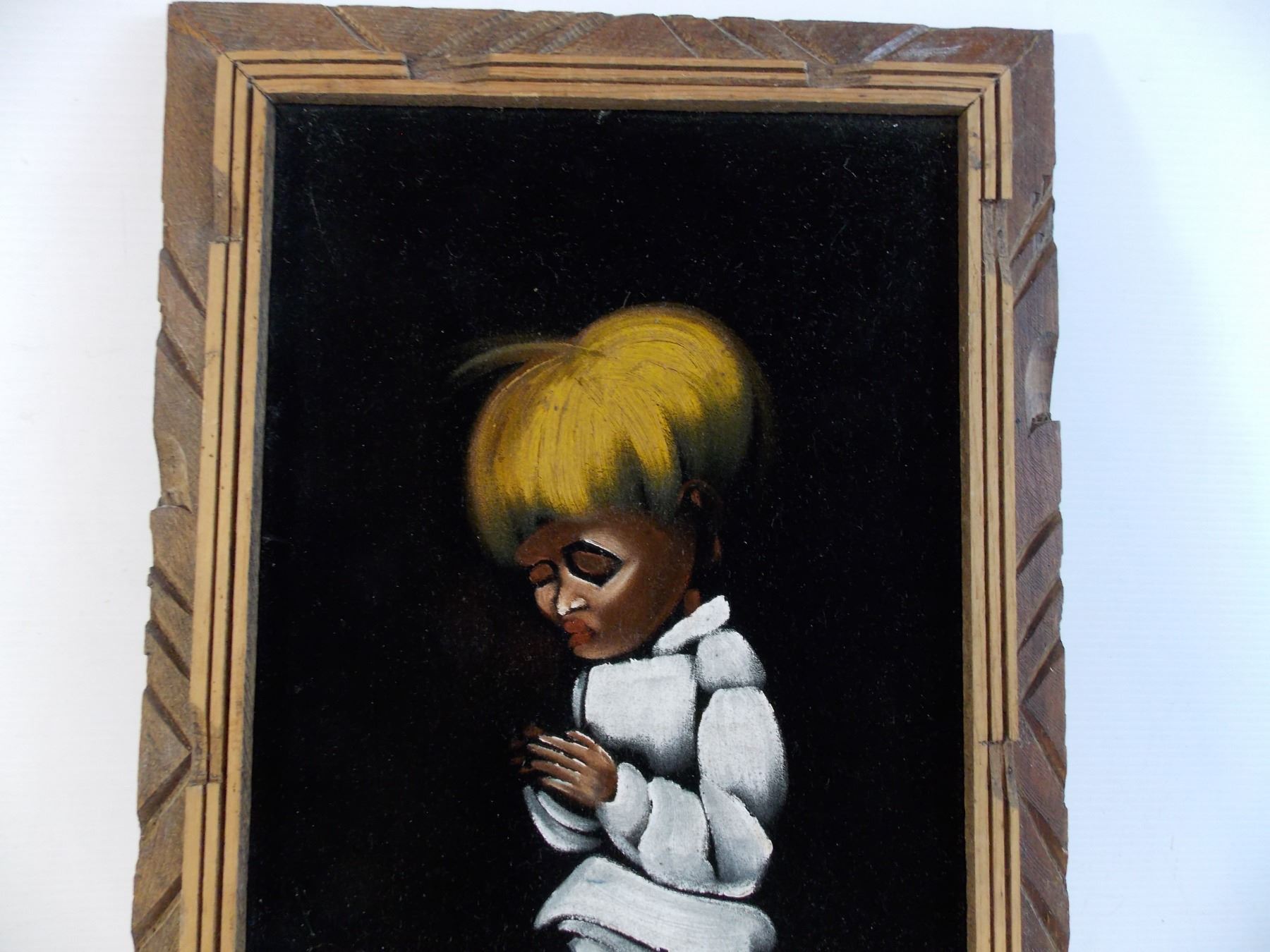 Painting on felt - boy praying - 23" tall