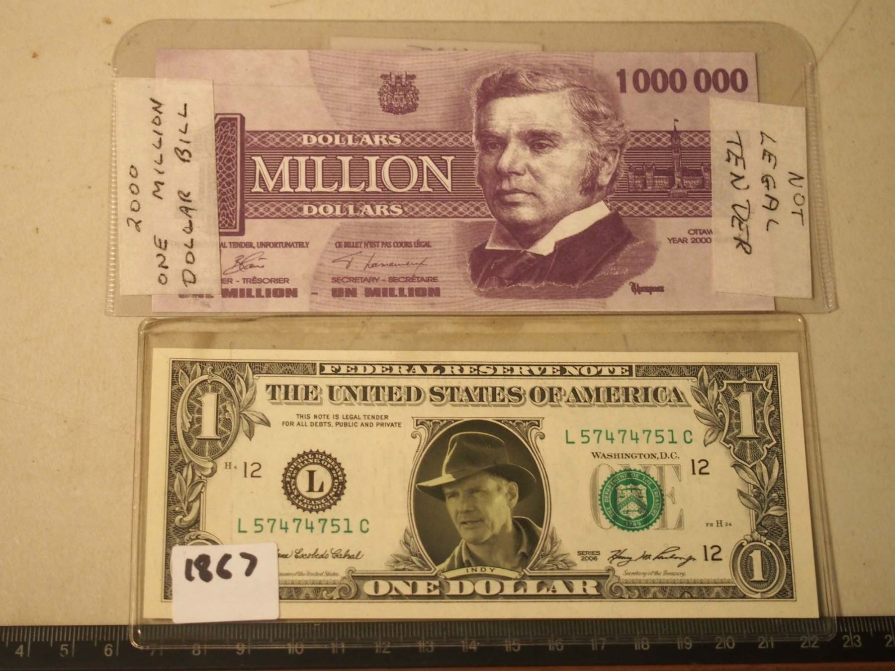 Pair Of Bills, One Million Dollar Bill (Not Legal Tender) & Indy 1$ American Bill, L57474751C (Picture Added)