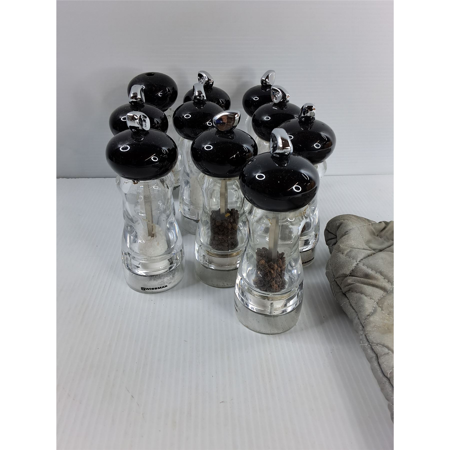 Pair Of Oven Mitts, (10) Salt & Pepper Grinders
