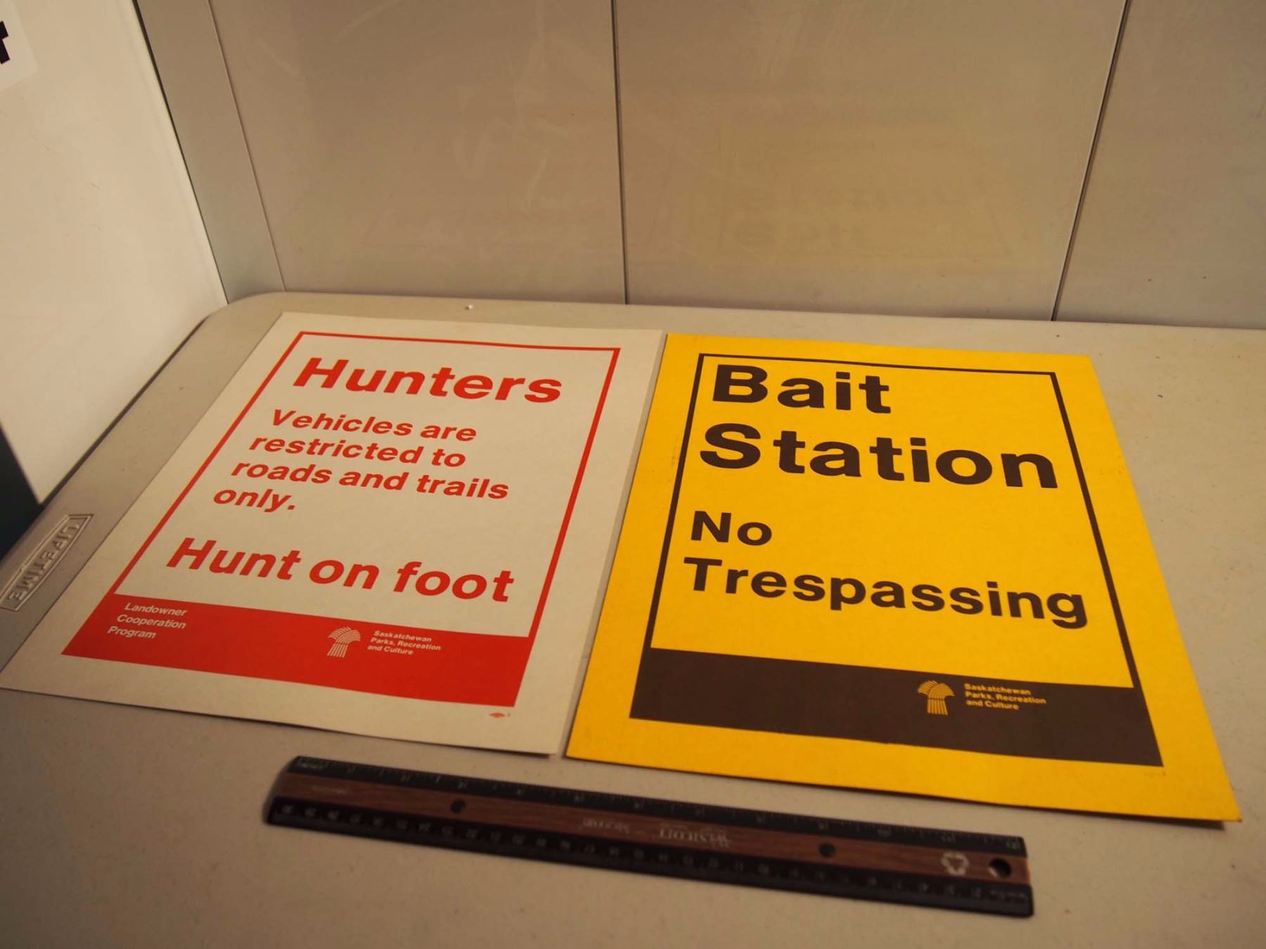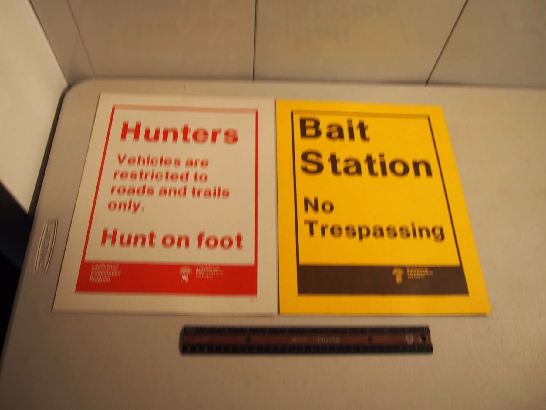 Pair Of Warning Signs ("Bait Station - No Tresspassing," Hunters Sign)