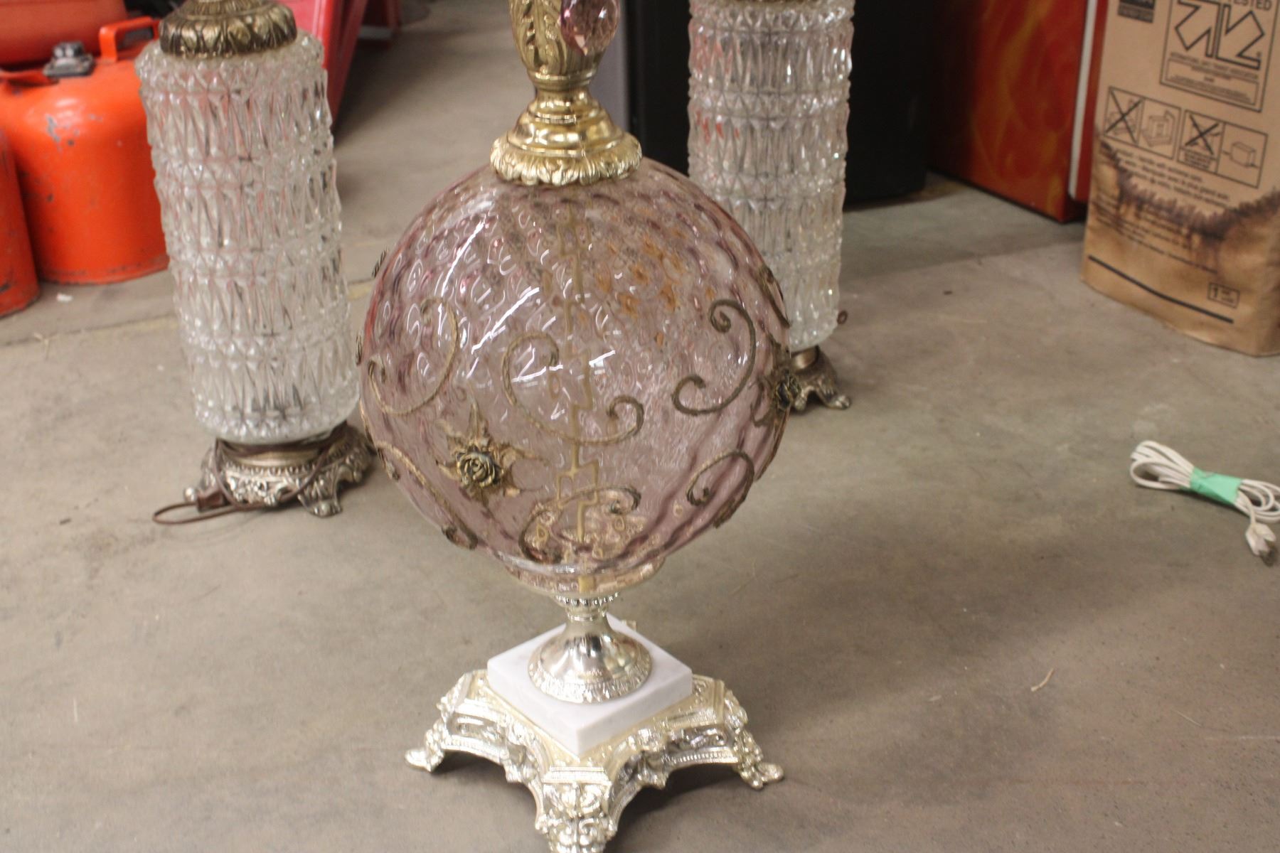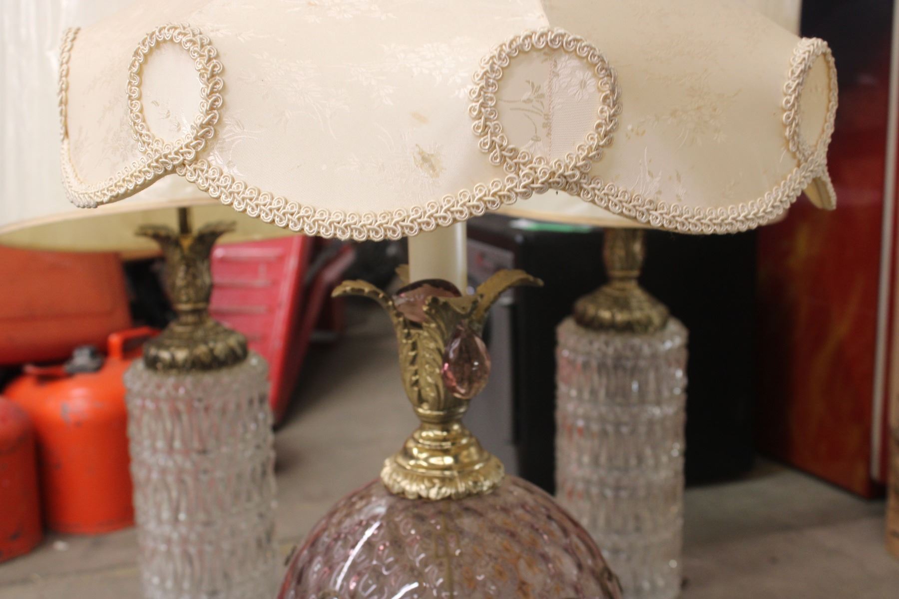 Pair of Pink Glass Lamp (Retro) With Shades