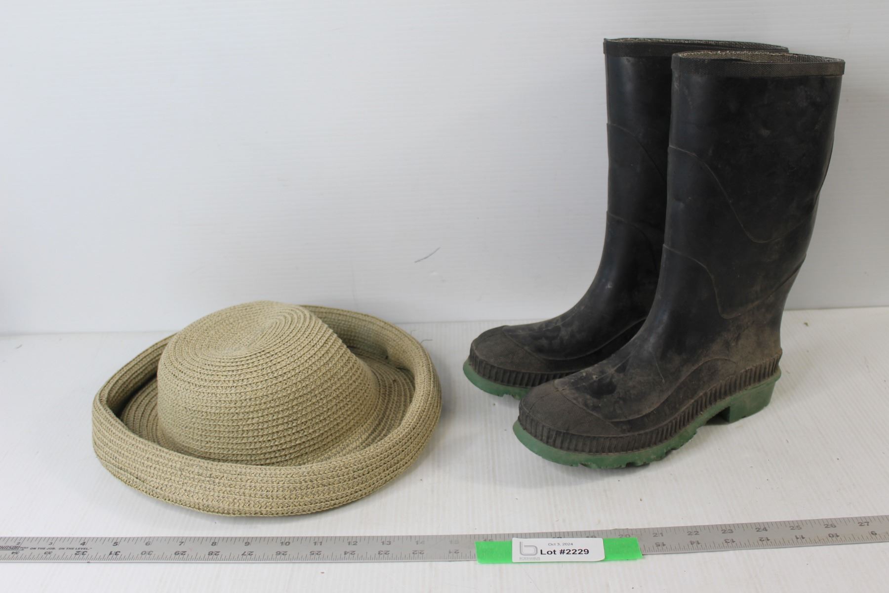 Pair of Rubber Boots About Size 9 With Garden Sun Hat