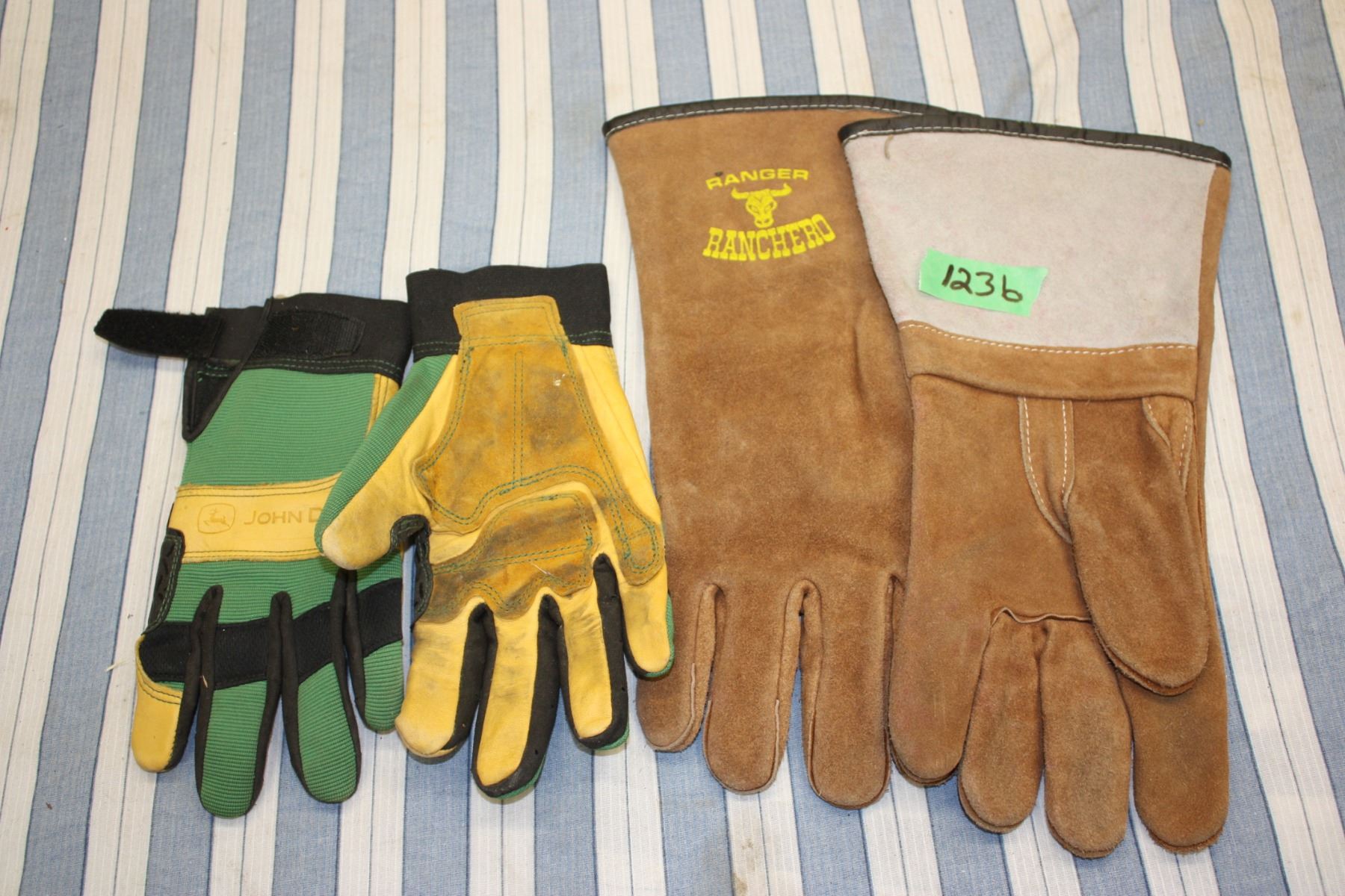 Pair of Welding Gloves and Pair of John Deer Gloves