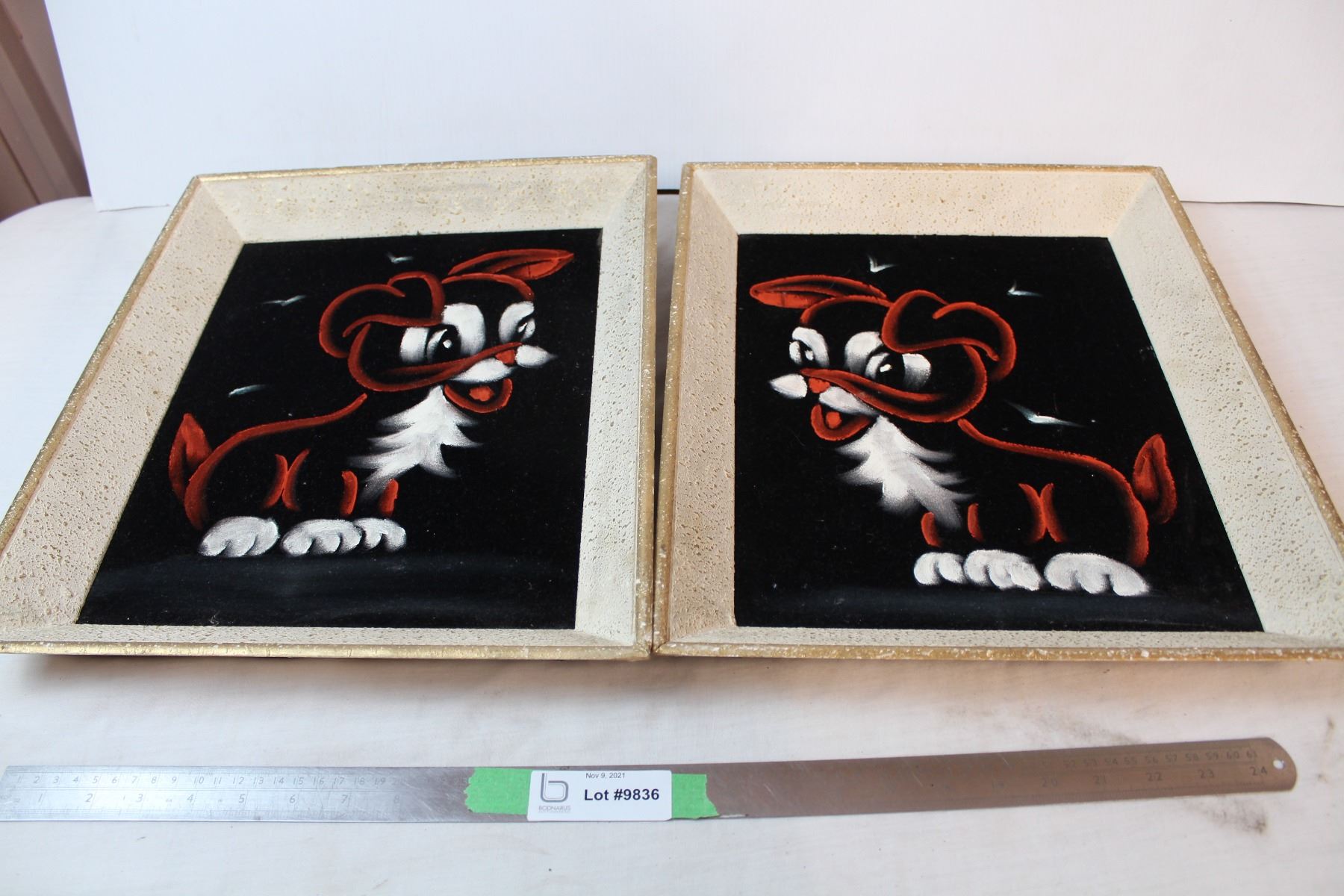 Pair of dog paintings on velvet