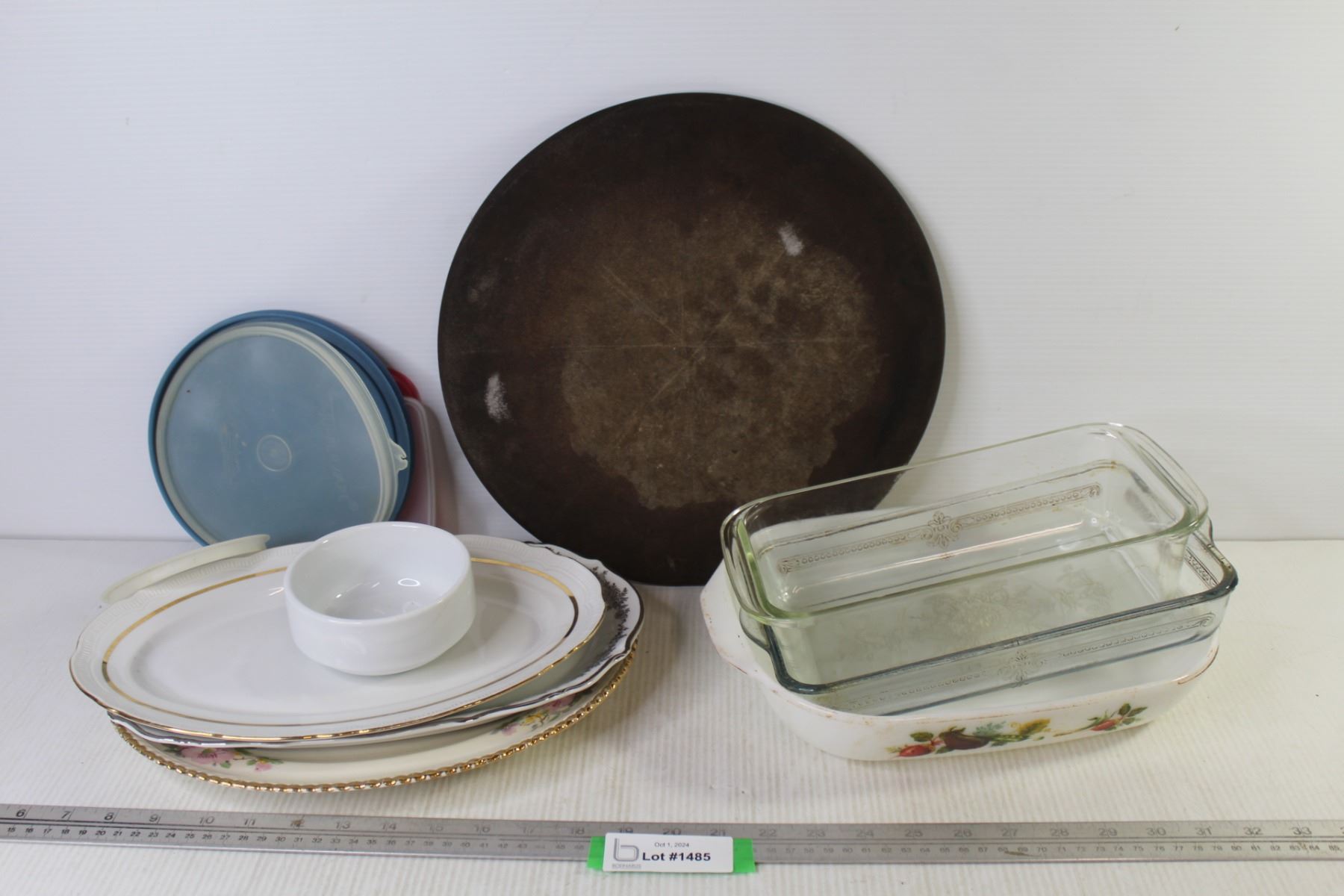 Pampered Chef Stoneware Pizza Cutting Board - Oval Plates - Glass Baking Pans (Pyrex & Fire King) - Plastic Lids