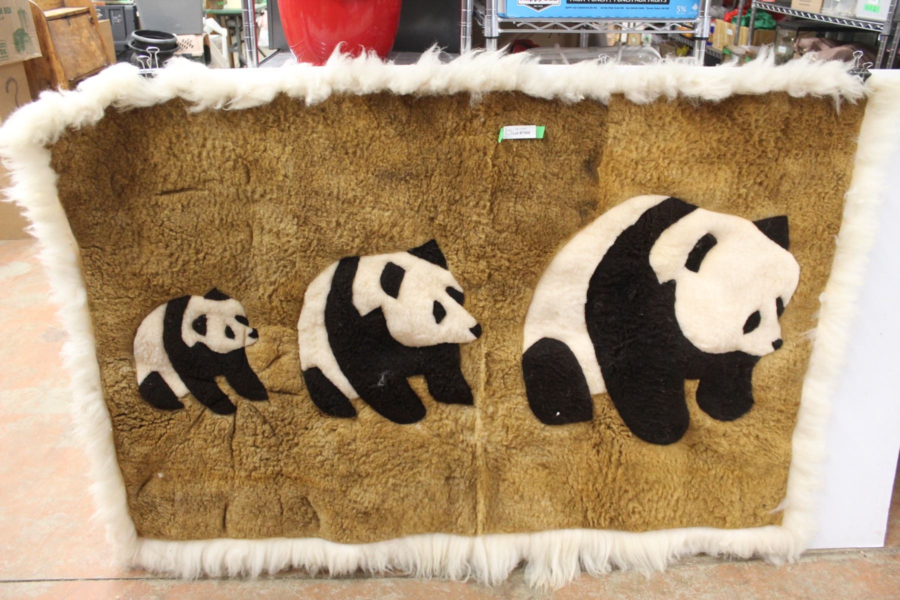 Panda Decorated Sheepskin Rug - 70" x 48"