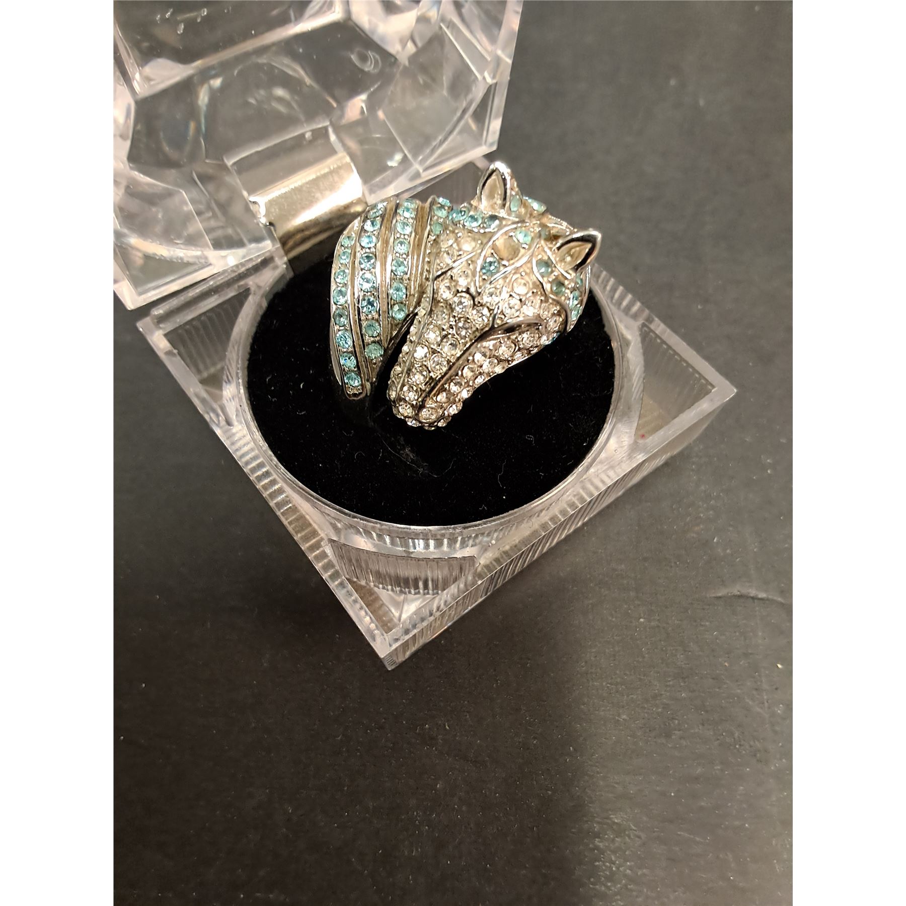 ^ Parklane "Hot To Trot" Blue & Clear Crystal Horse Ring - Size 10 - w/Case