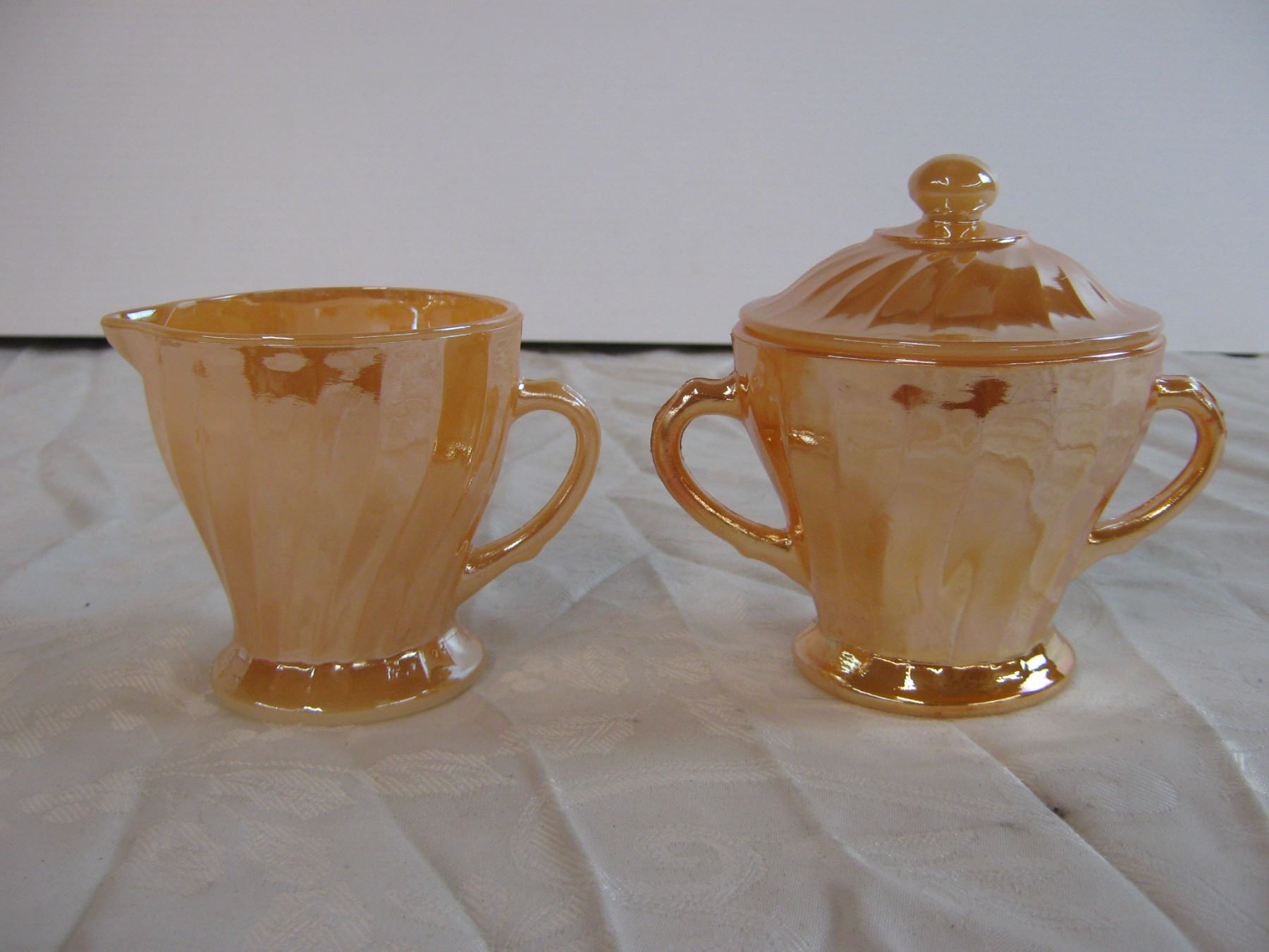 Peach Lustre Fire King Cream Sugar (3 pcs.)