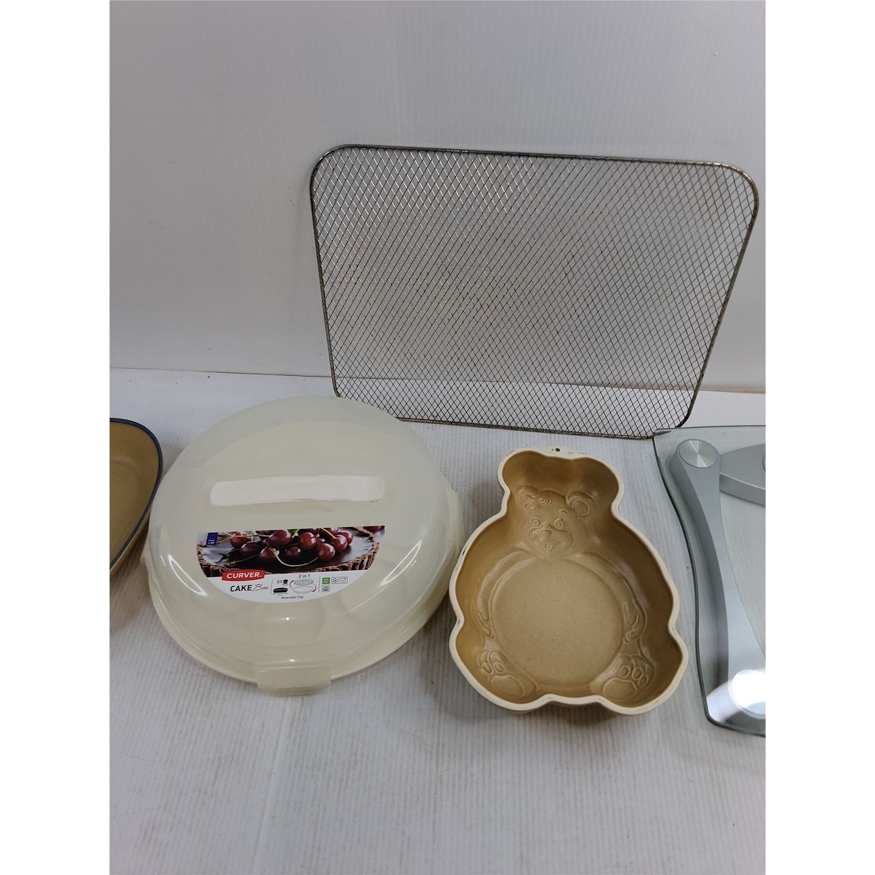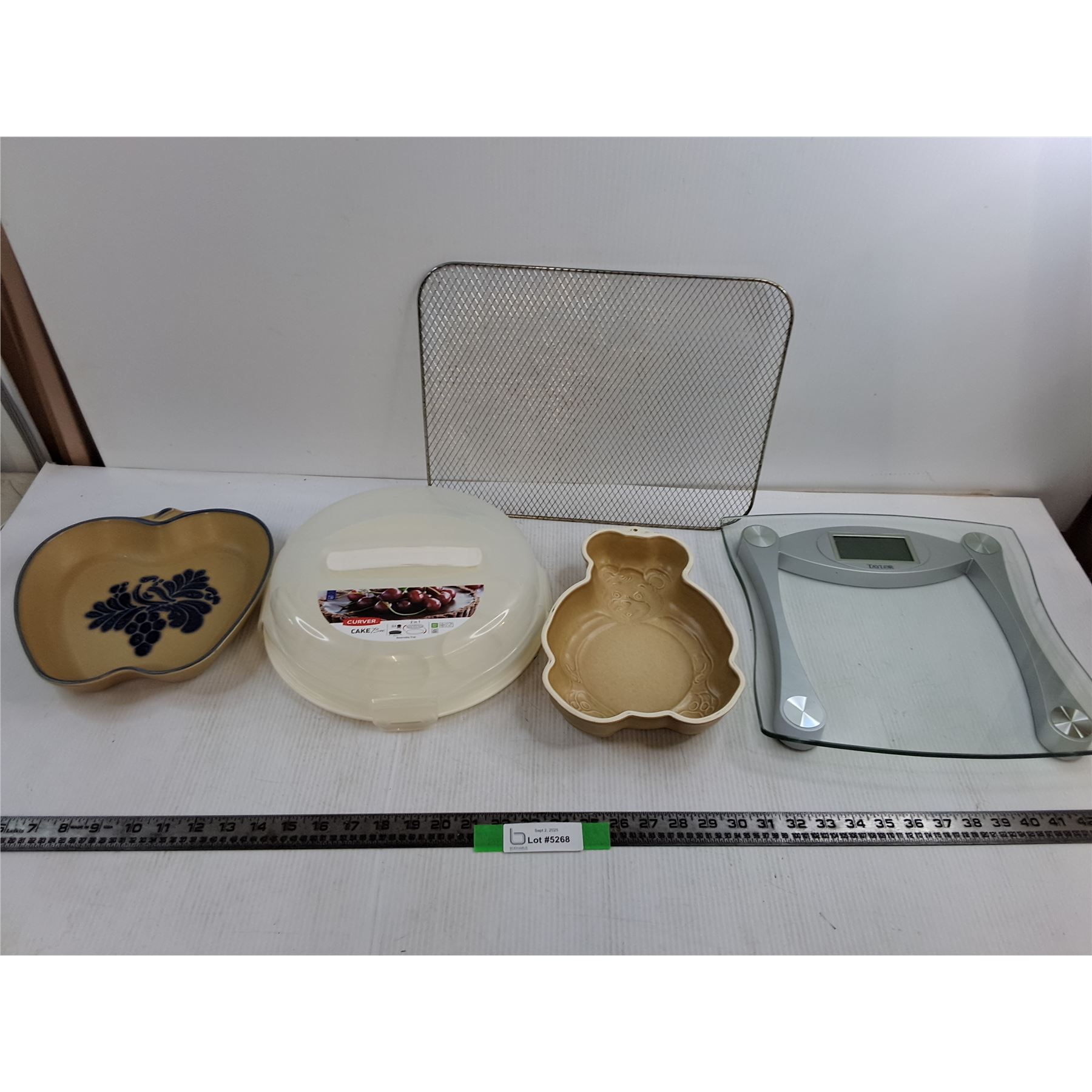 Pflatzgraff 9″ Apple Tray, Taylor Digital Scale As-Is, Curver Bake Box, Misc