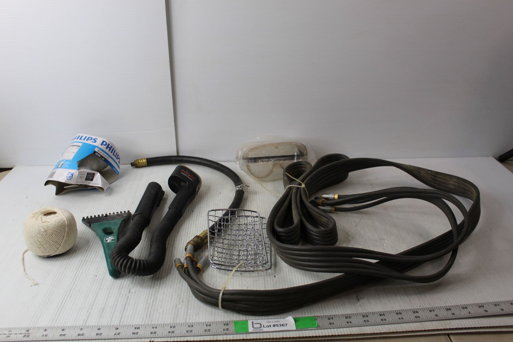 Philips 65W Flood Light, Safety Glasses- Sealed, Black & Decker Snake Light- Untested, Philips PXT 1000 Cable, Misc.