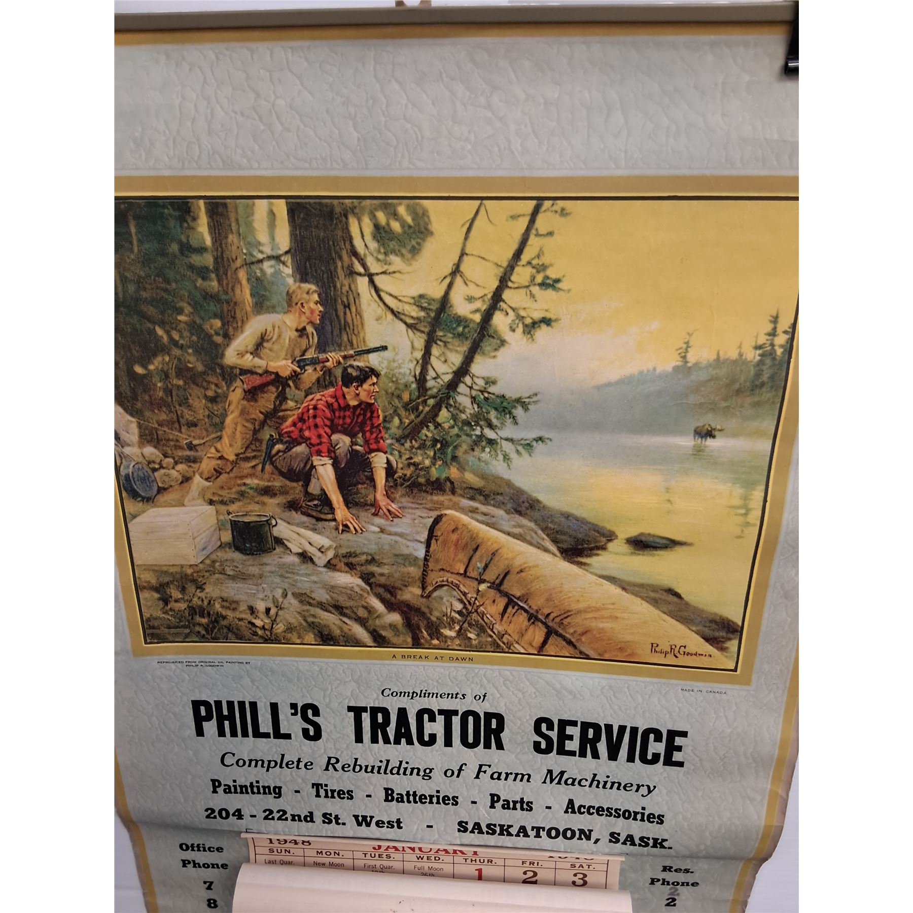 Phill's Tractor Service Vintage Wall Calendar - 1948