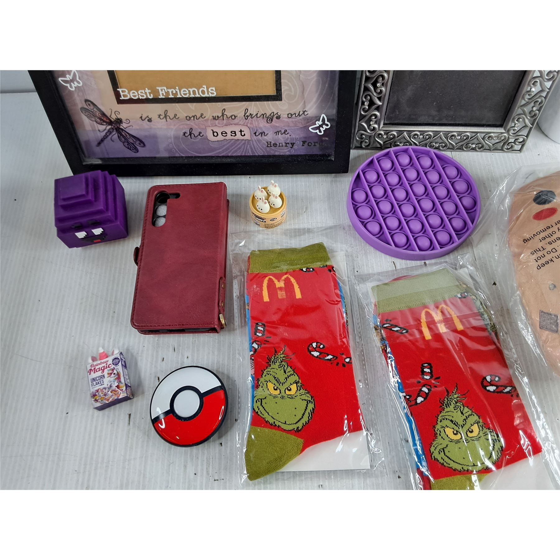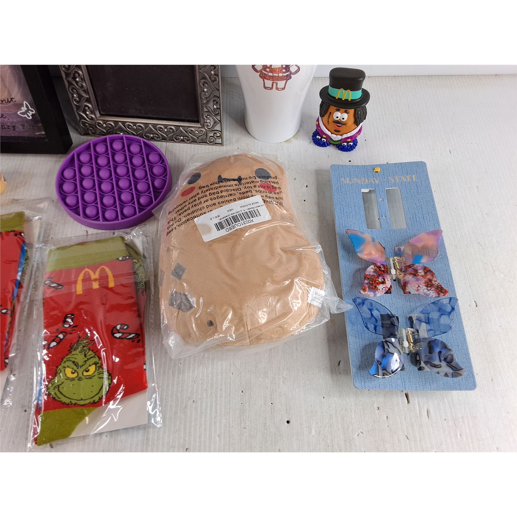 Picture Frames, Pop It Toy, McDonald's Christmas Socks, Butterfly Hair Clips, Phone Case, Cup, Misc