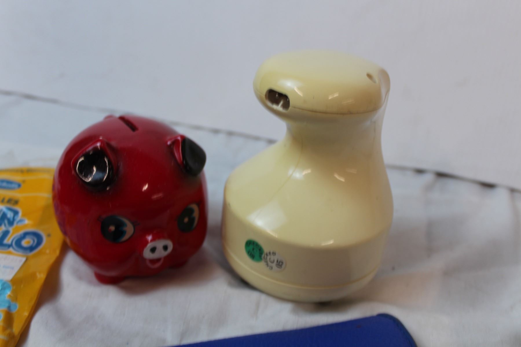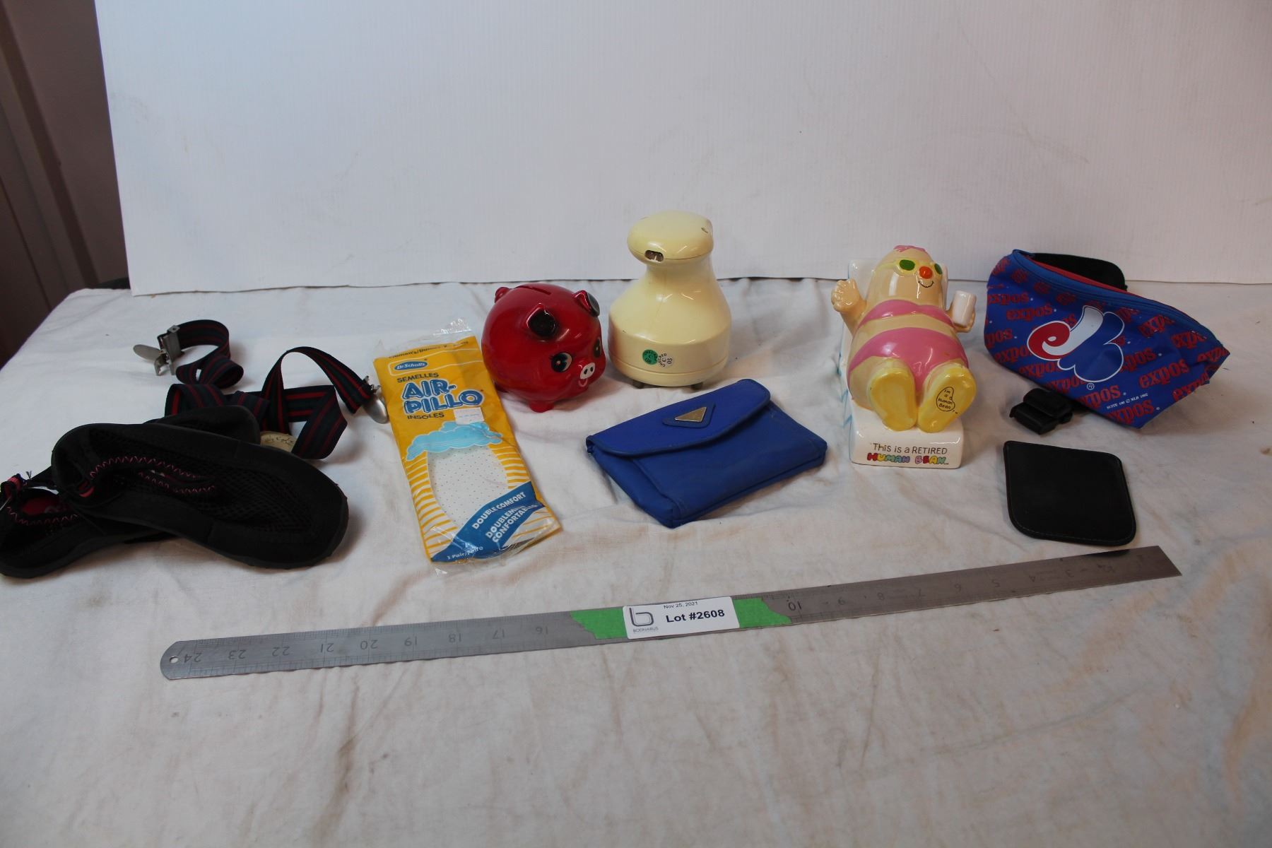 Piggy Banks, massager, fanny pack, kids swim shoes