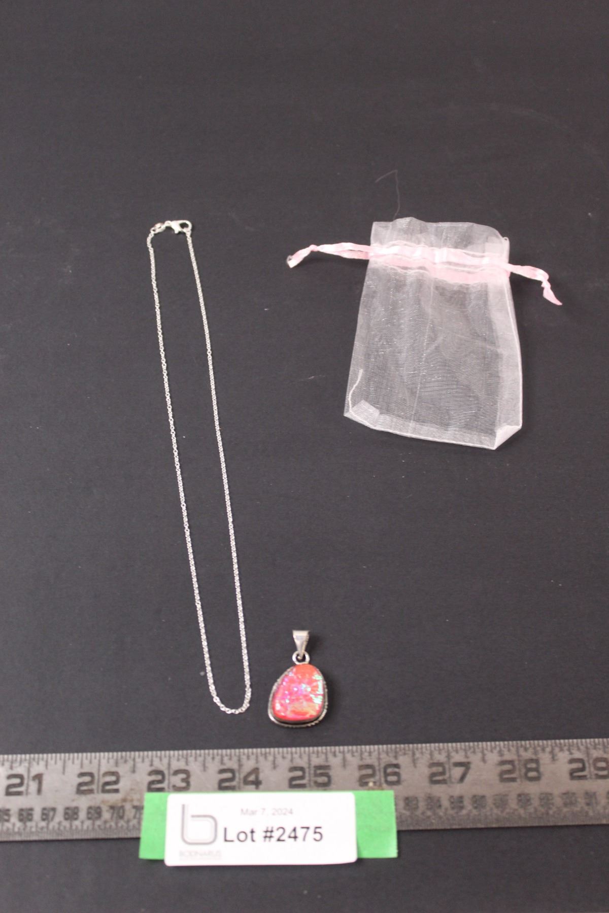 Pink Druzy Pendant with Sterling Silver 18" Chain