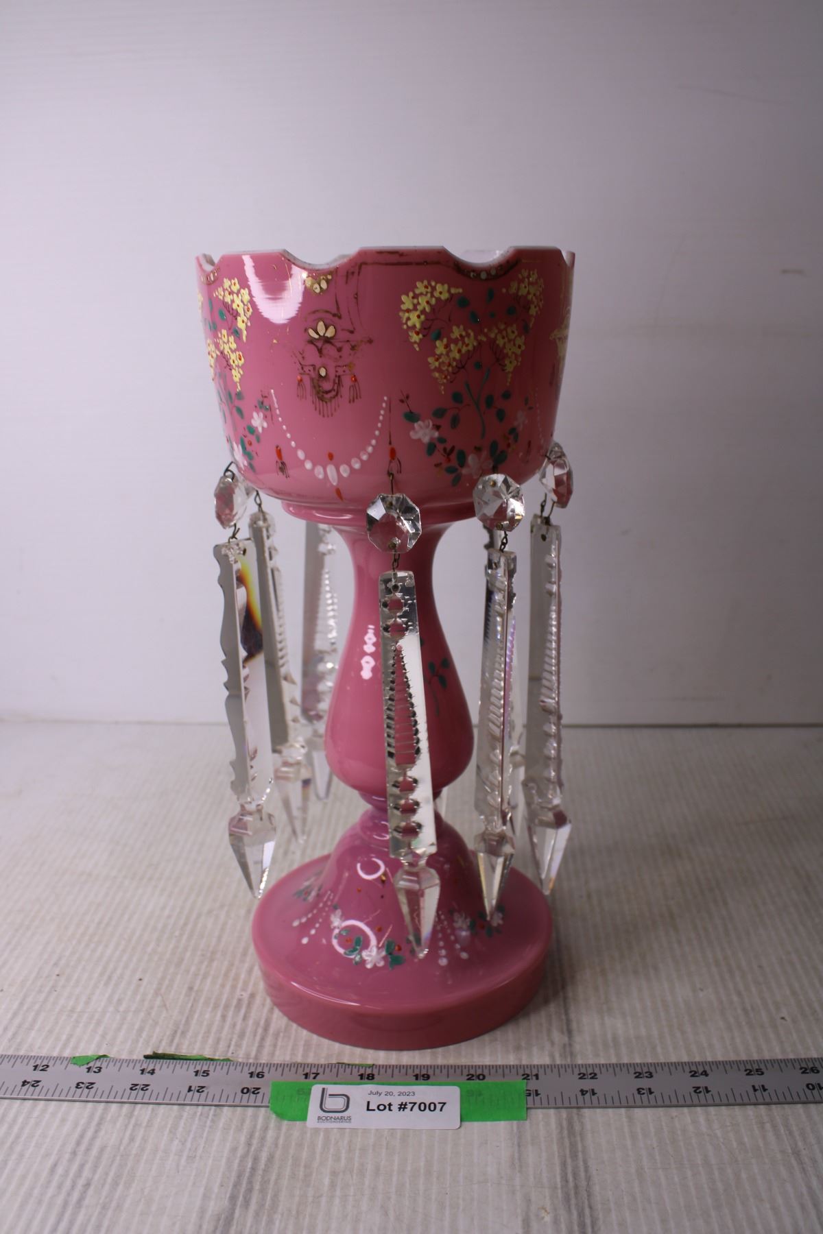 *Pink Lustre Decorative Handpainted Candleholder - 14" (Missing One Hanging Crystal)